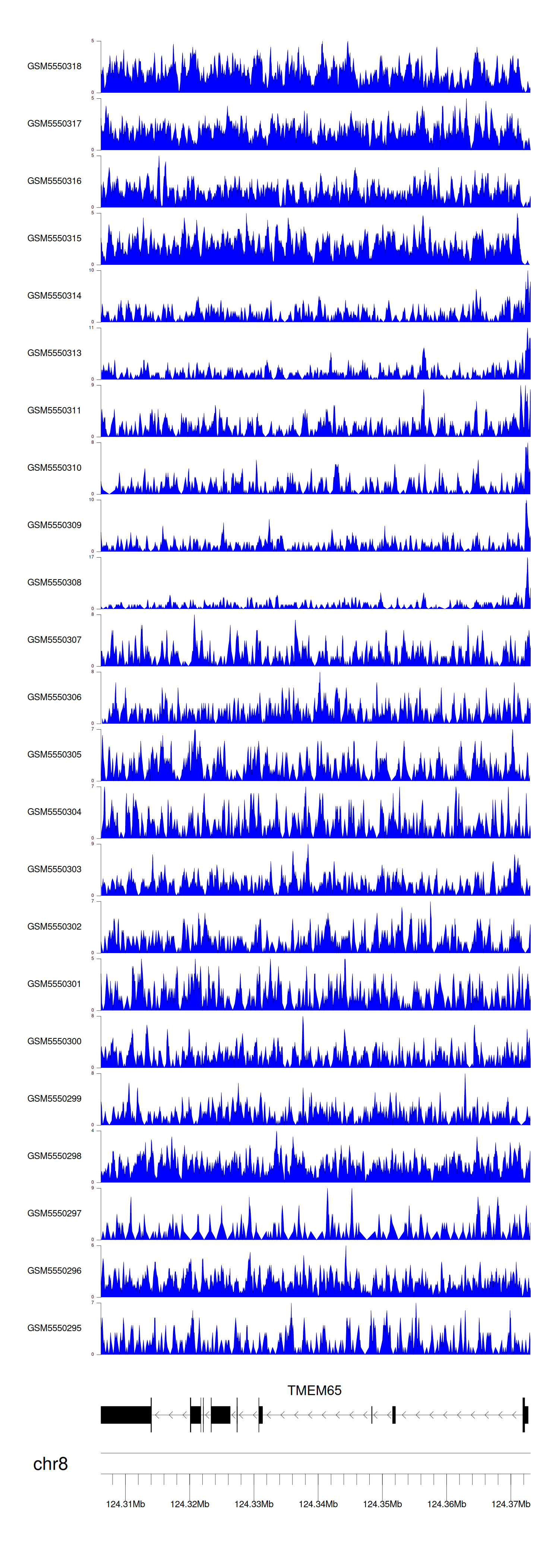 > Dataset: GSE143026 - TMEM65 peak across samples