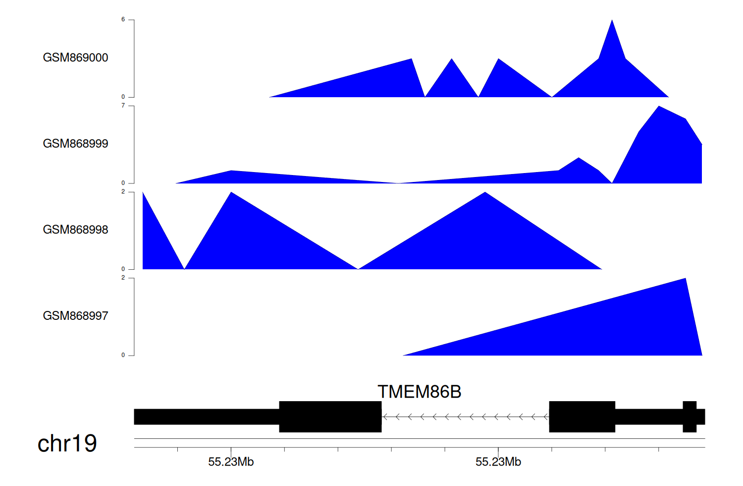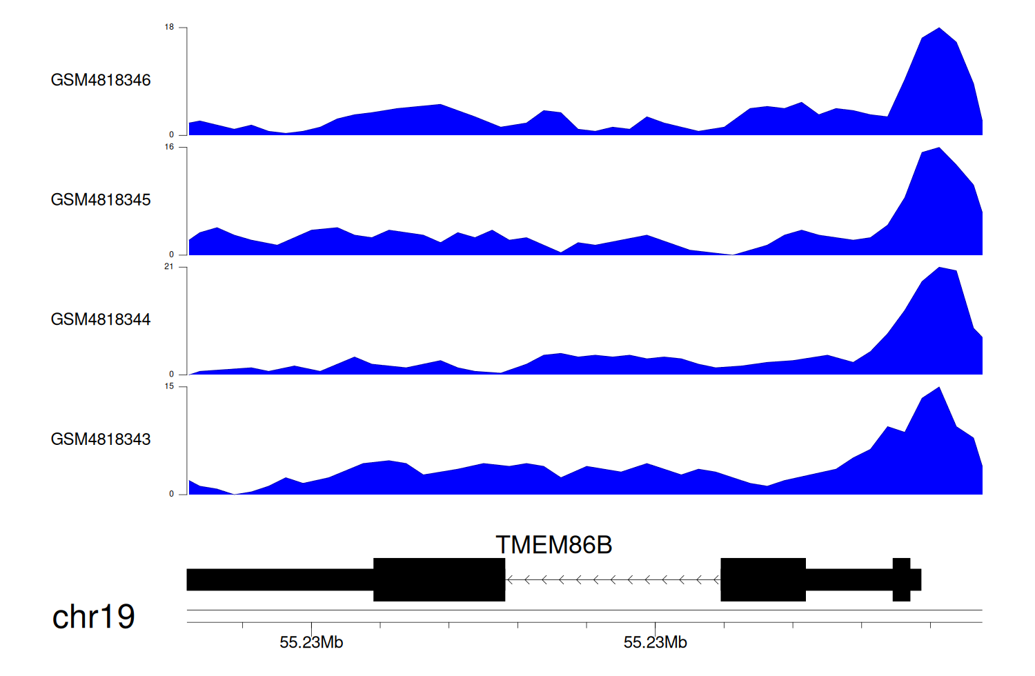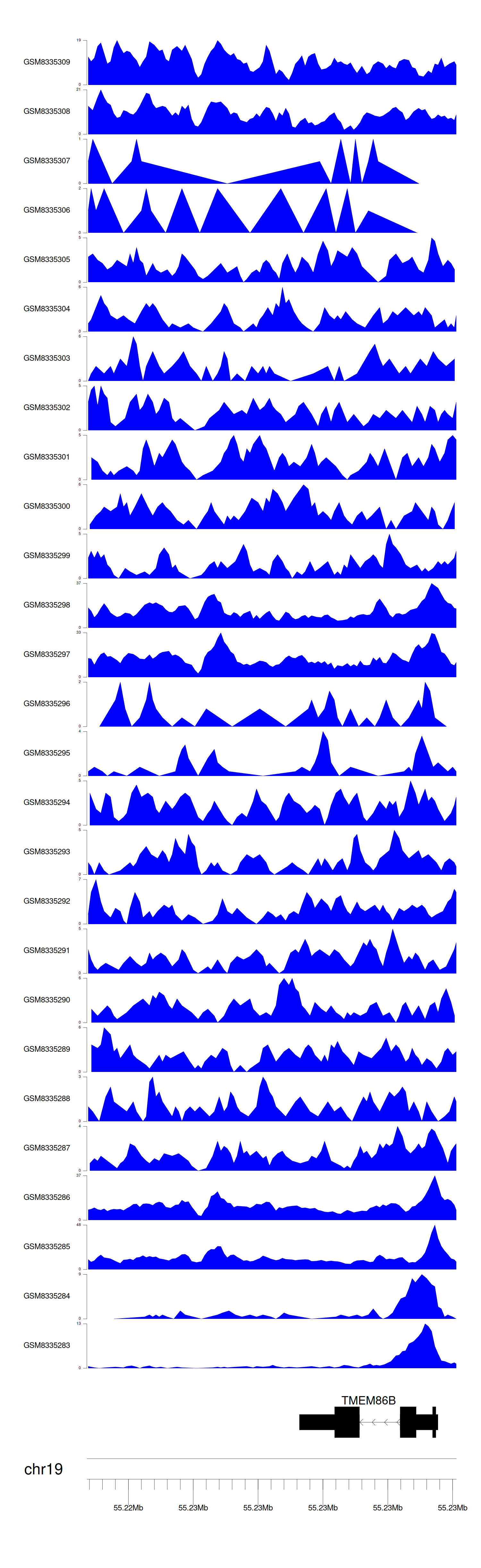 > Dataset: GSE131257 - TMEM86B peak across samples