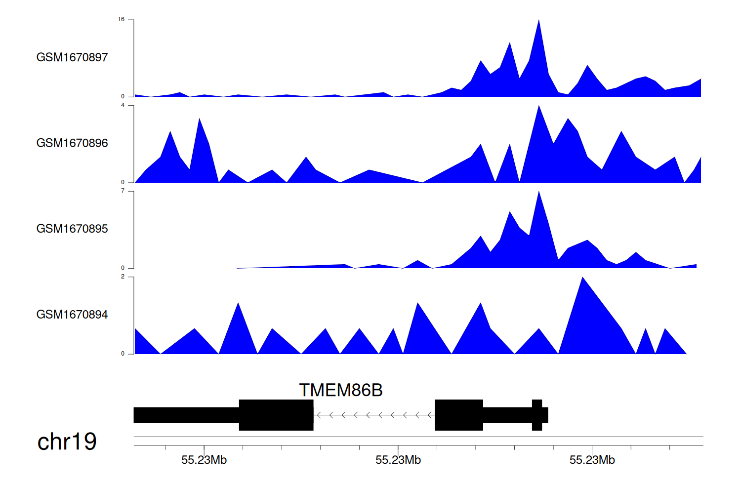 > Dataset: GSE68402 - TMEM86B peak across samples
