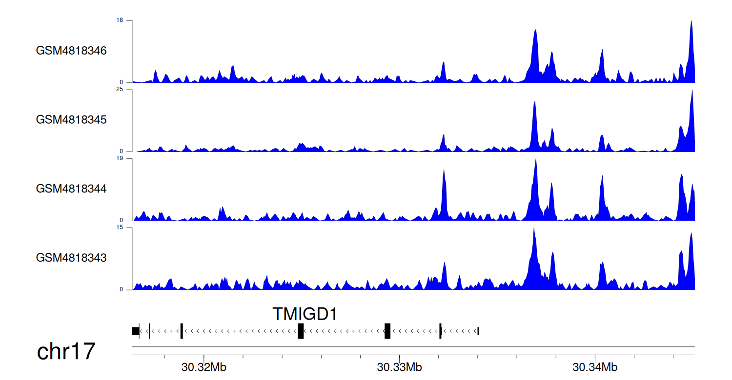 > Dataset: GSE270130 - TMIGD1 peak across samples