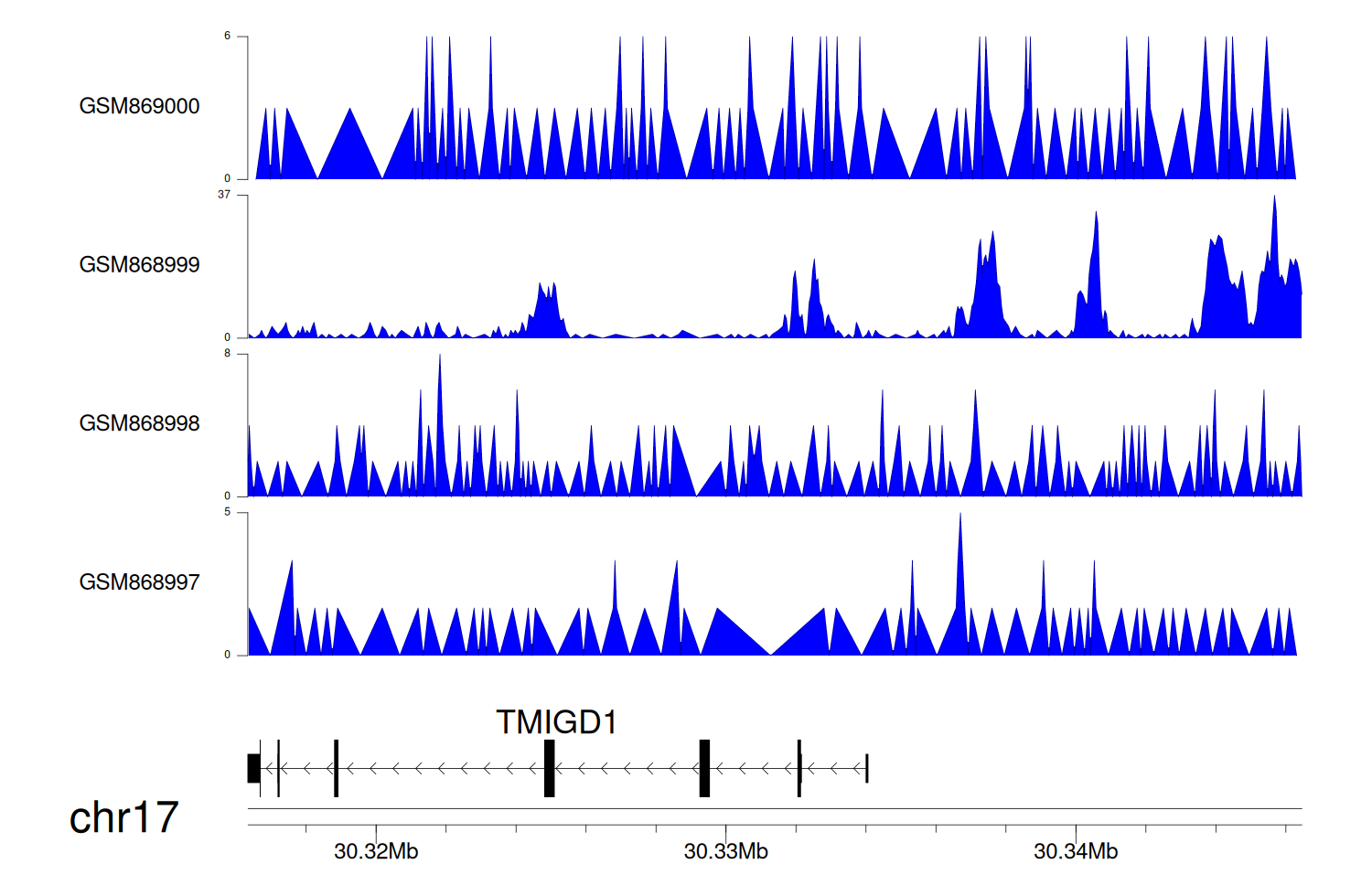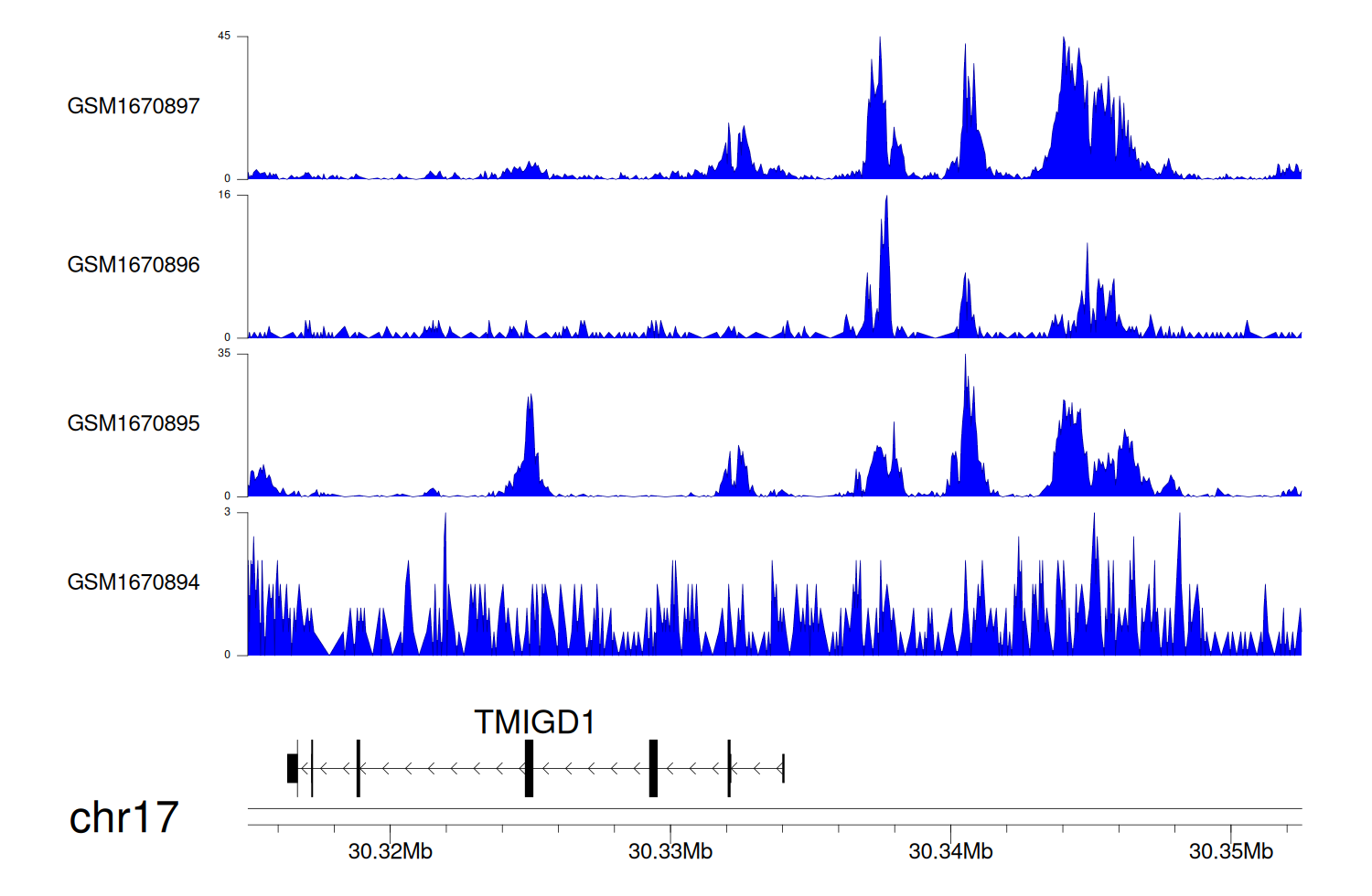 > Dataset: GSE68402 - TMIGD1 peak across samples