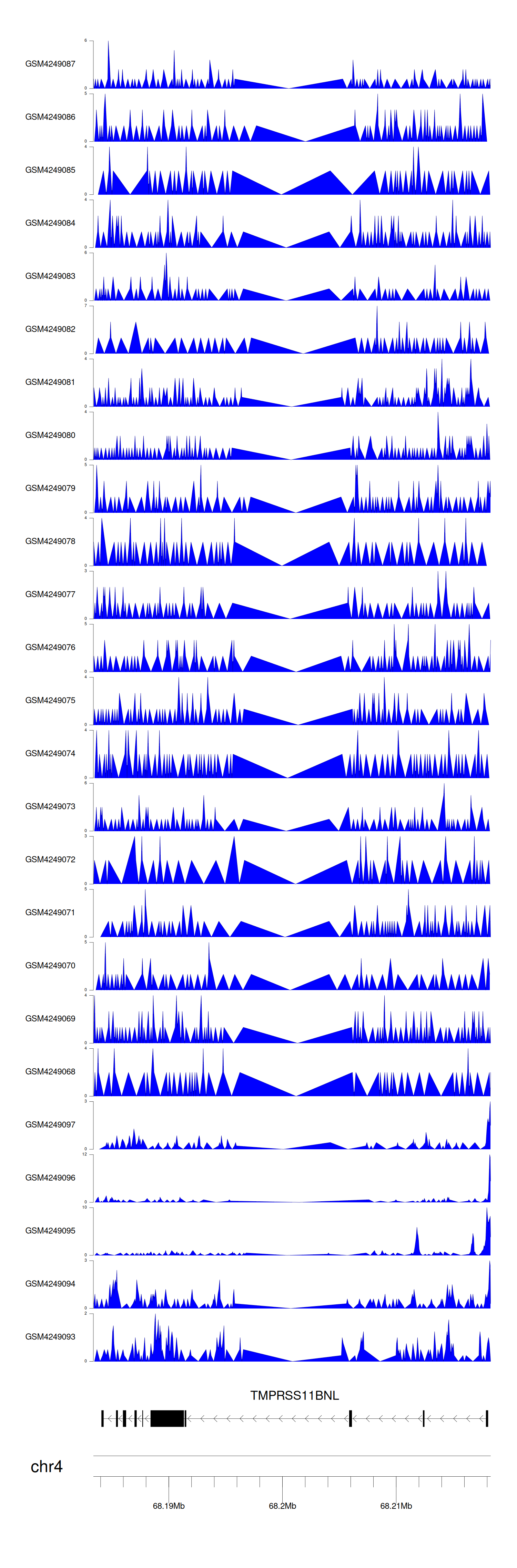 > Dataset: GSE143026 - TMPRSS11BNL peak across samples