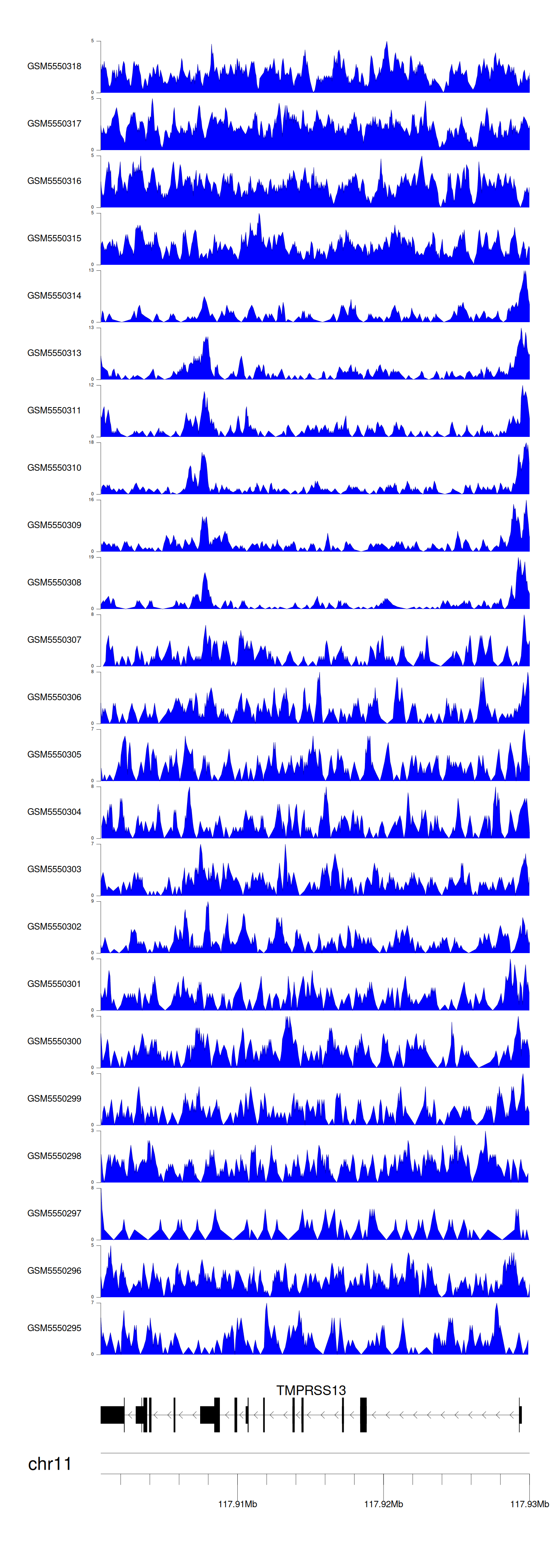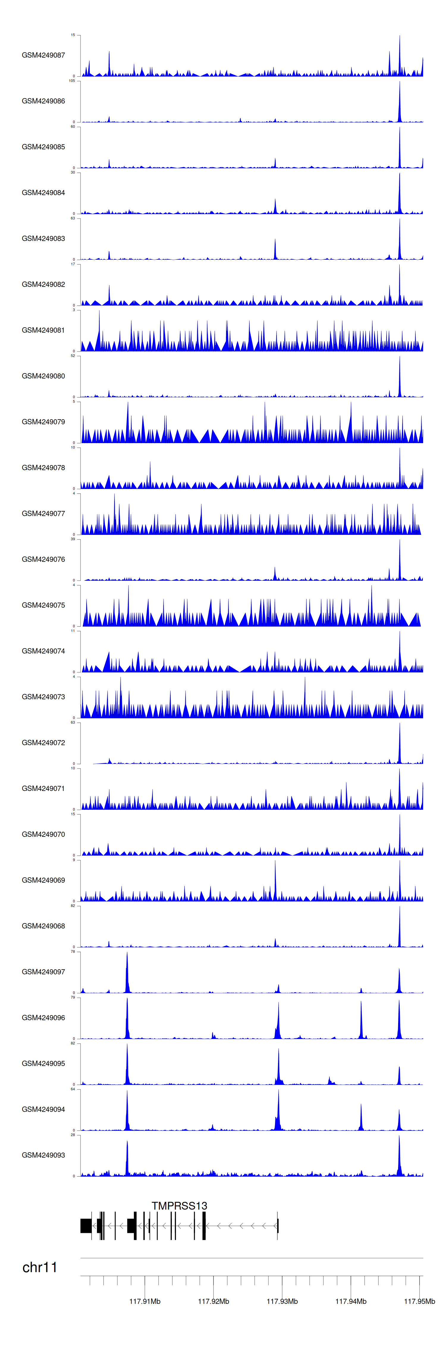 > Dataset: GSE183048 - TMPRSS13 peak across samples