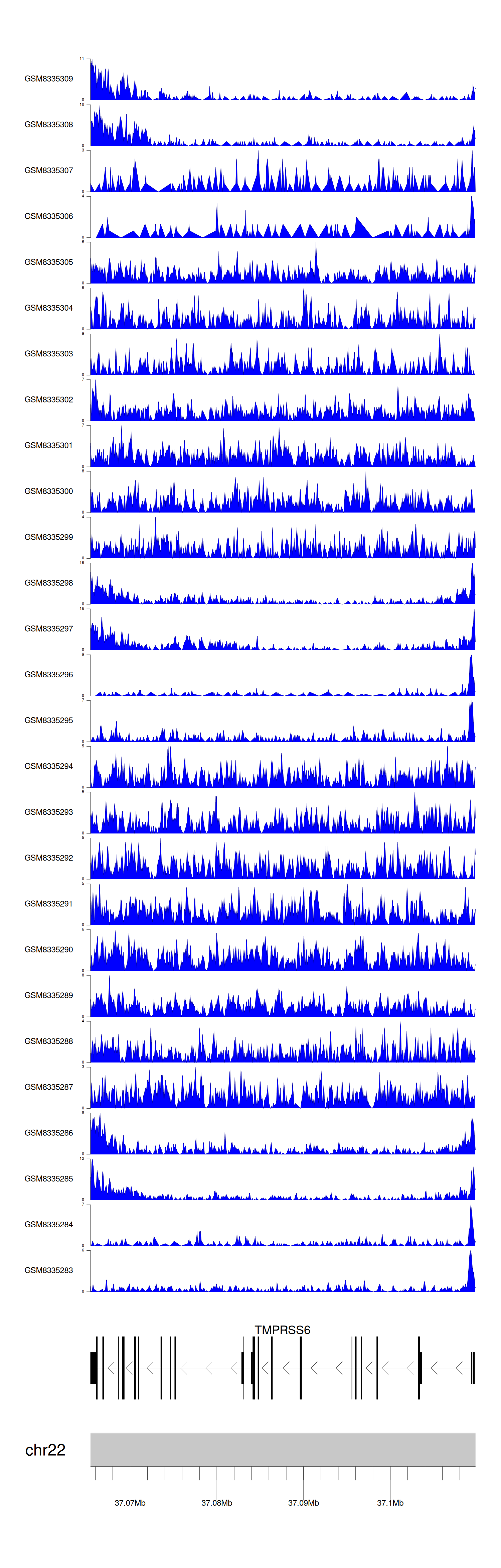 > Dataset: GSE131257 - TMPRSS6 peak across samples