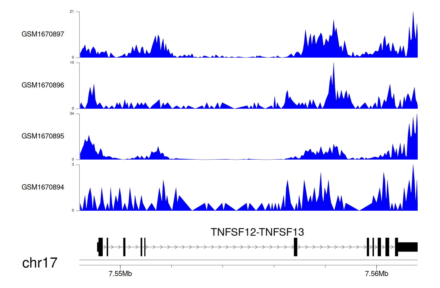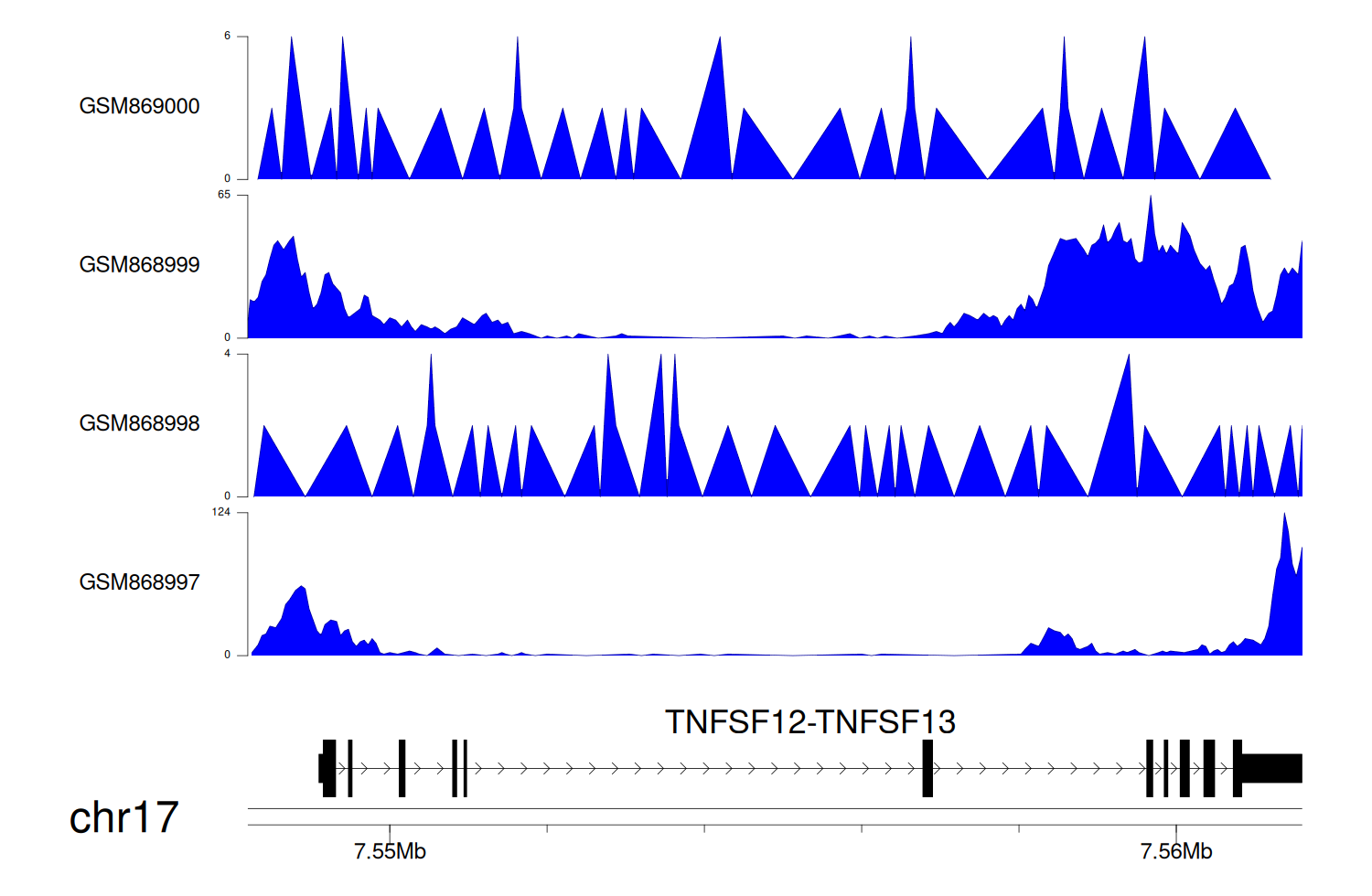 > Dataset: GSE68402 - TNFSF12-TNFSF13 peak across samples