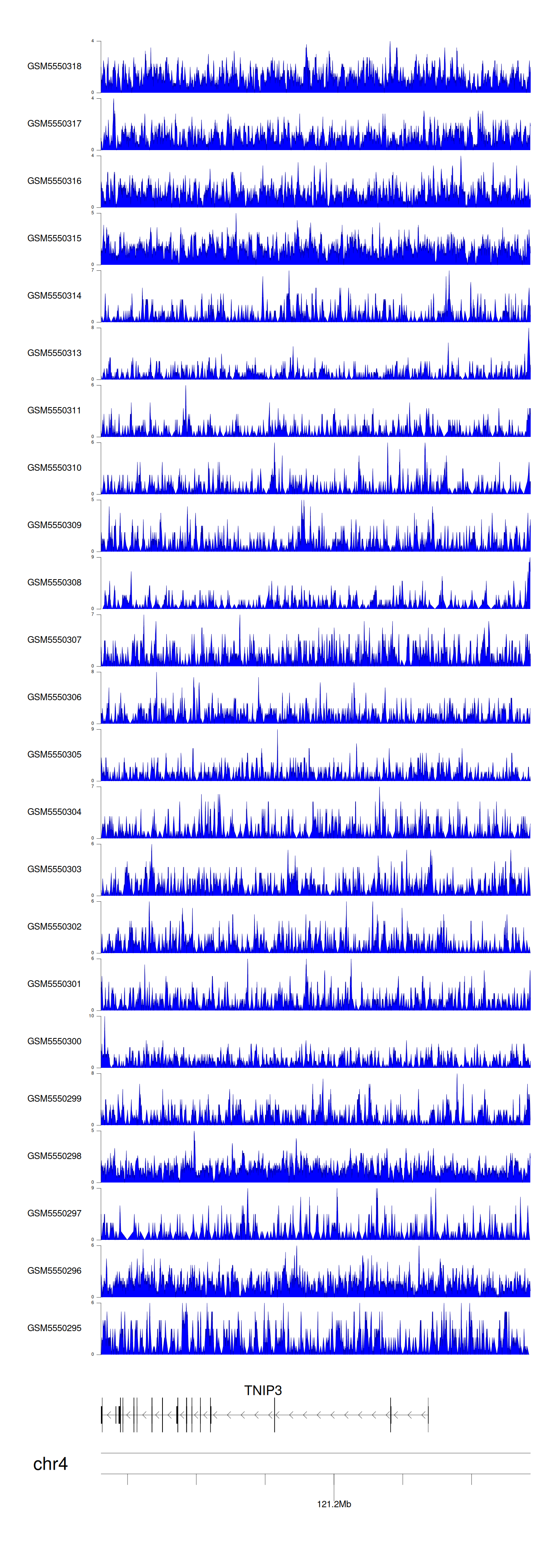 > Dataset: GSE143026 - TNIP3 peak across samples
