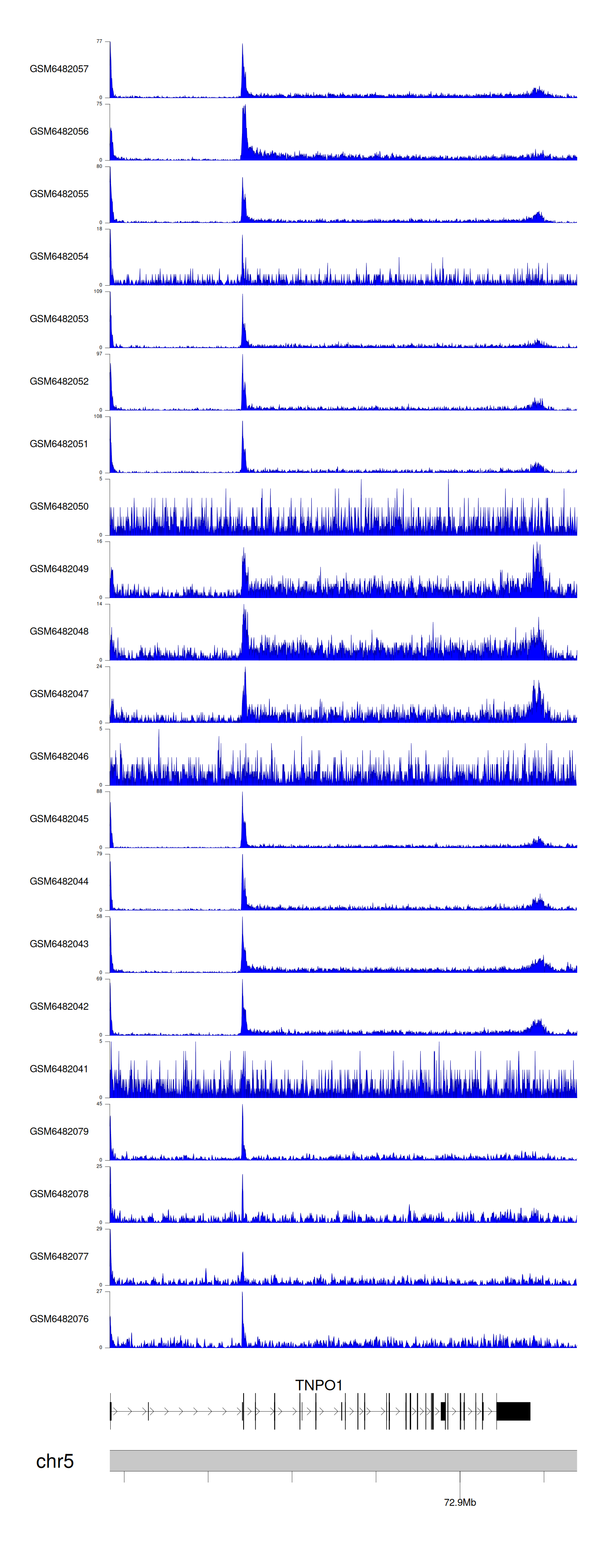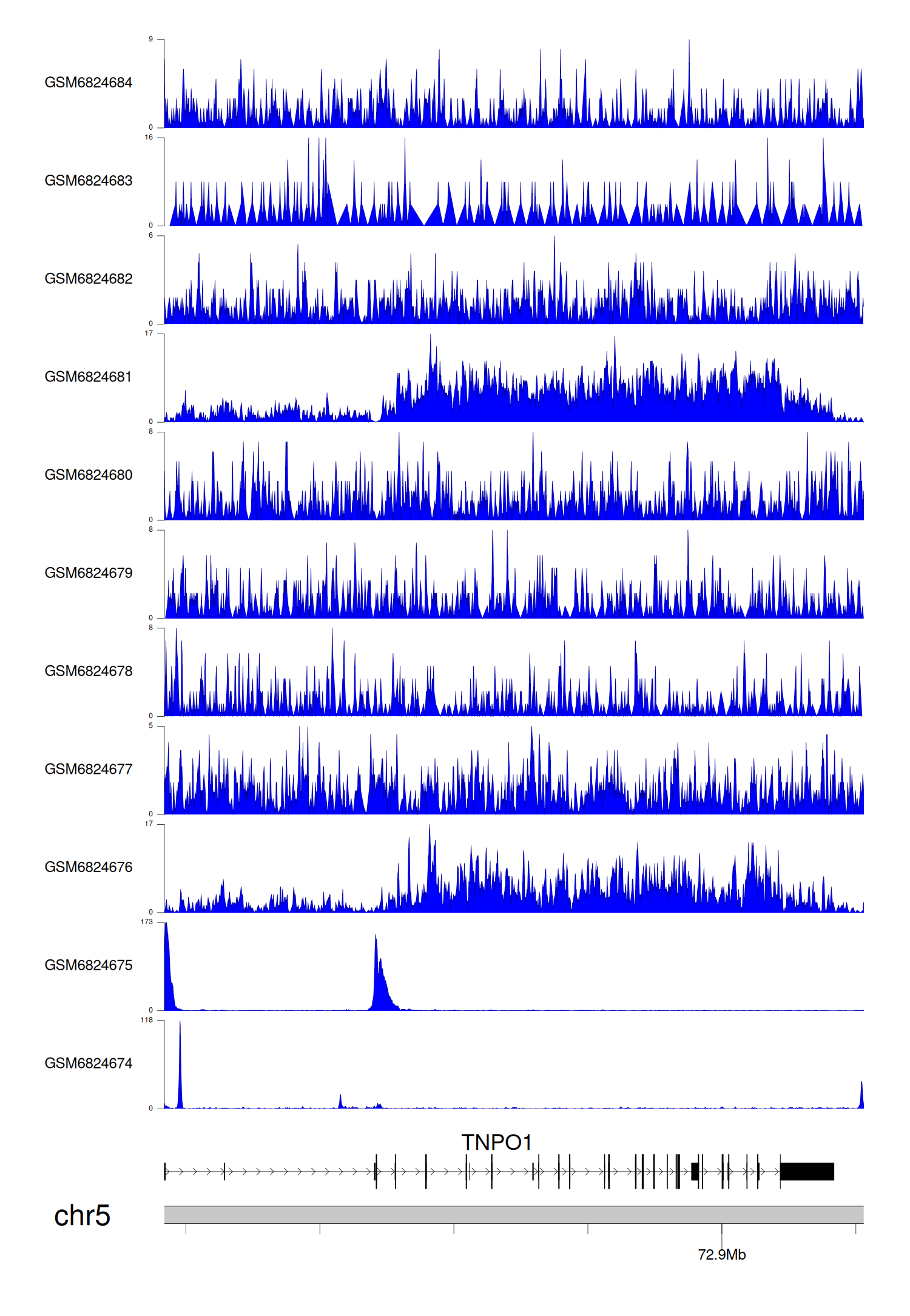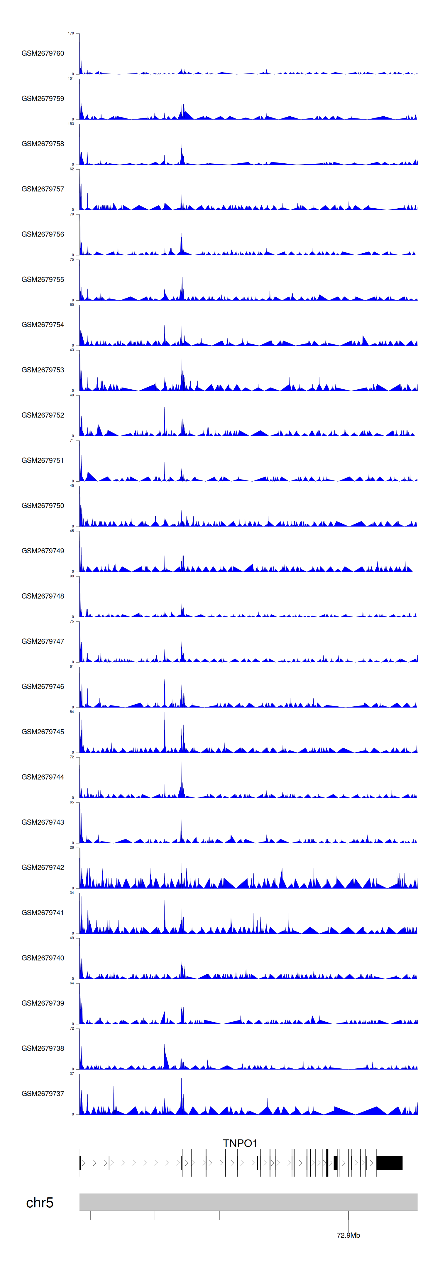 > Dataset: GSE165703 - TNPO1 peak across samples