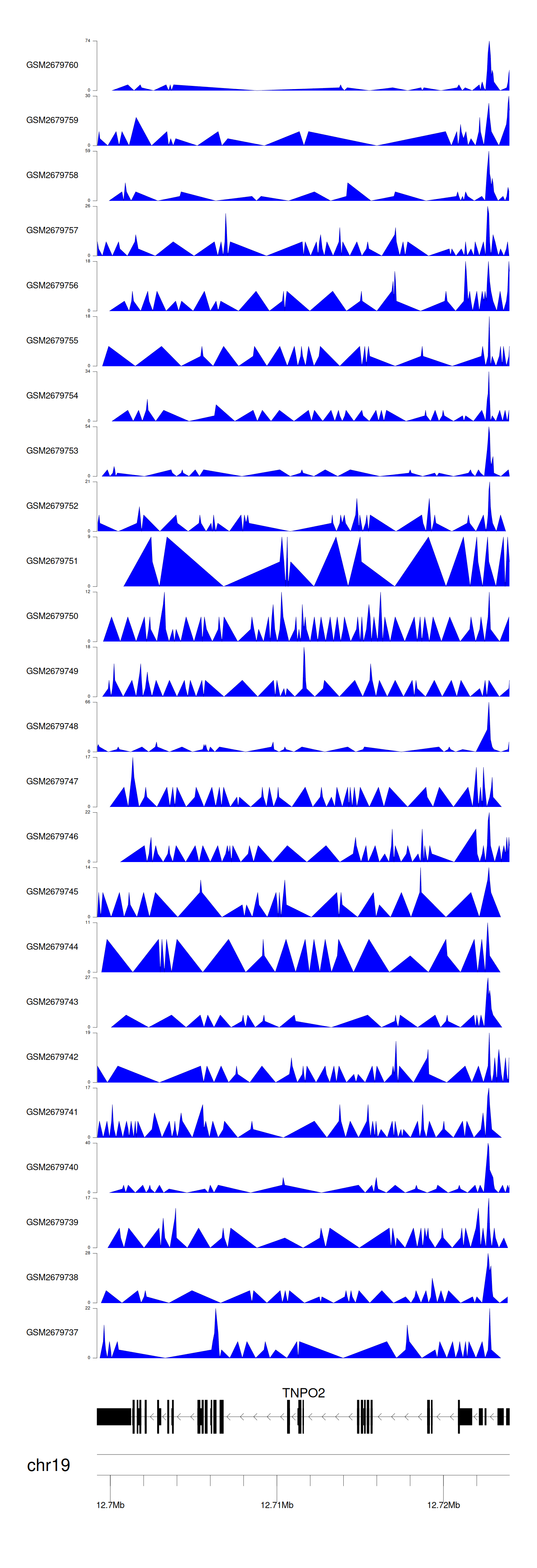 > Dataset: GSE100376 - TNPO2 peak across samples