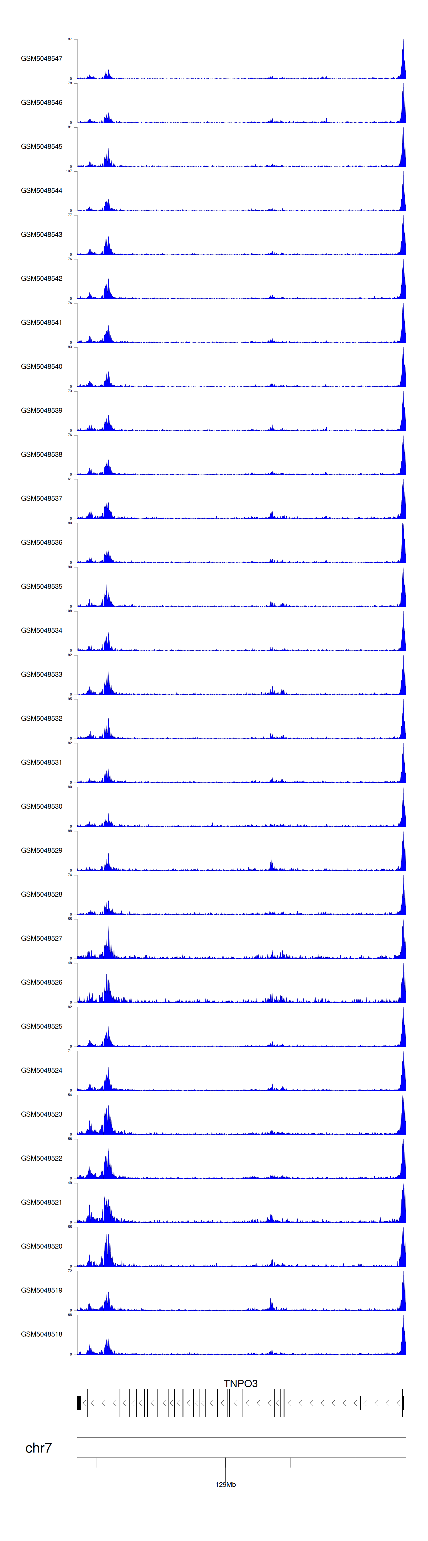 > Dataset: GSE144329 - TNPO3 peak across samples