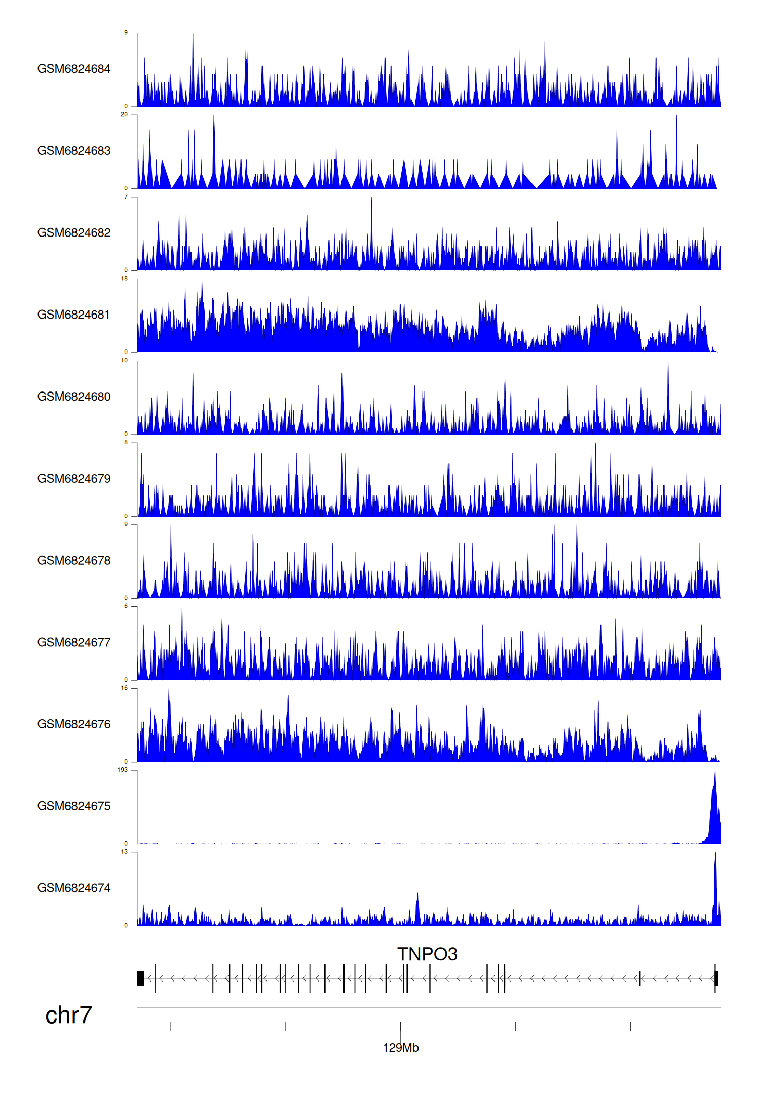 > Dataset: GSE165703 - TNPO3 peak across samples