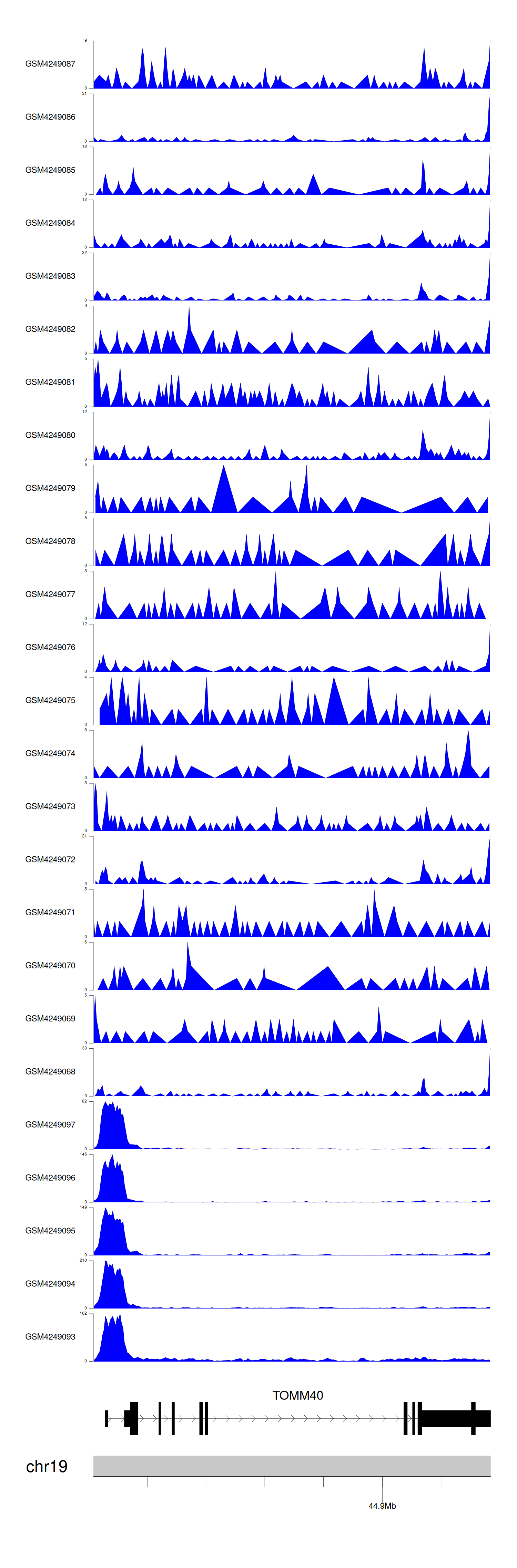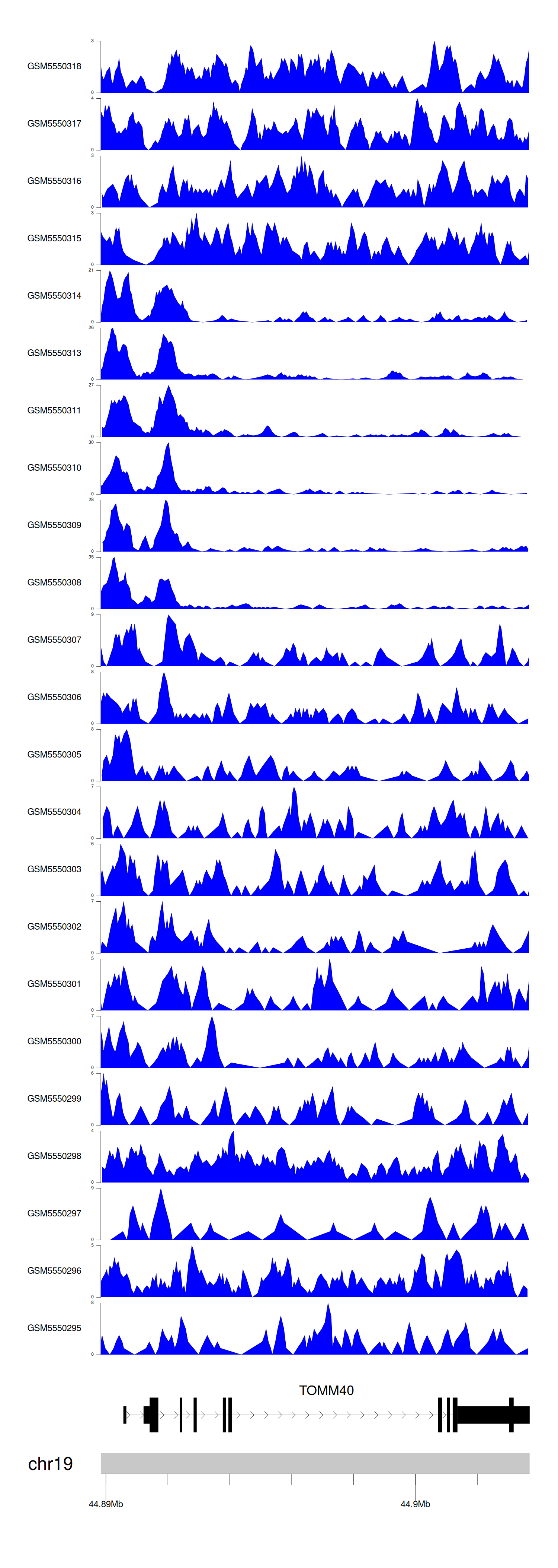> Dataset: GSE143026 - TOMM40 peak across samples