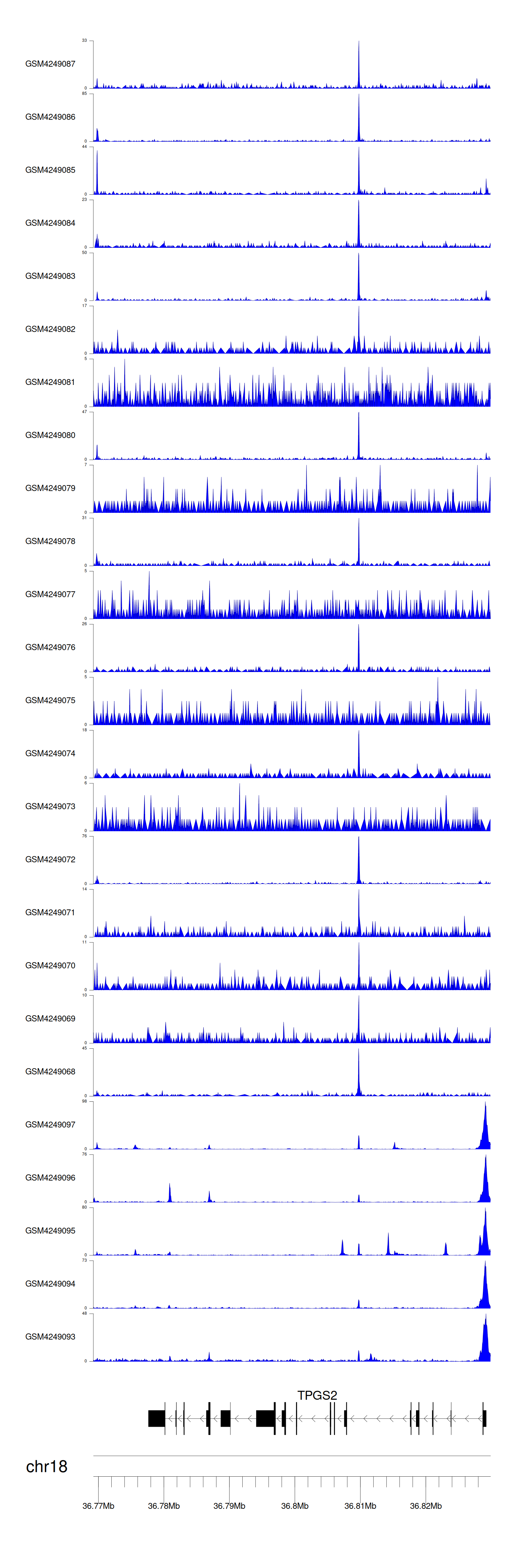 > Dataset: GSE143026 - TPGS2 peak across samples