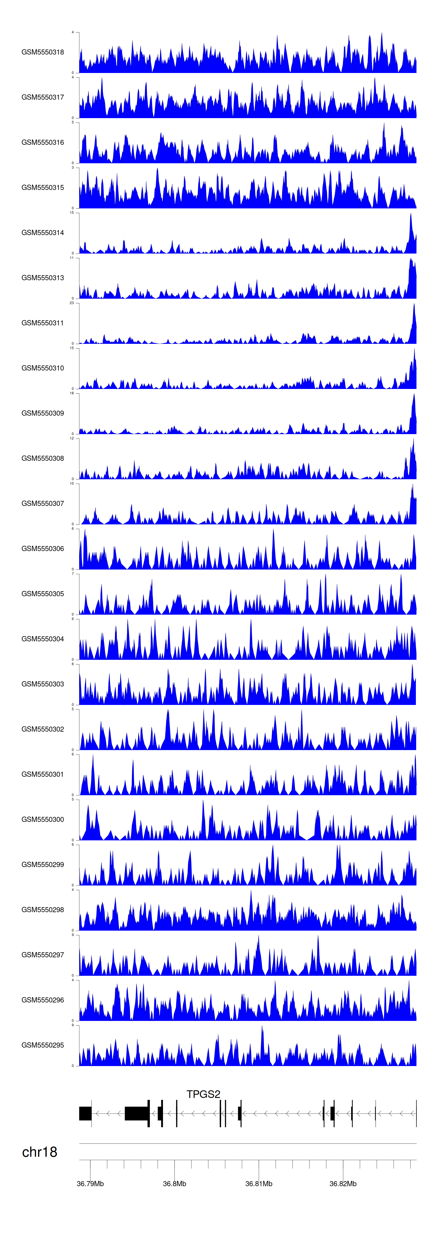 > Dataset: GSE183048 - TPGS2 peak across samples