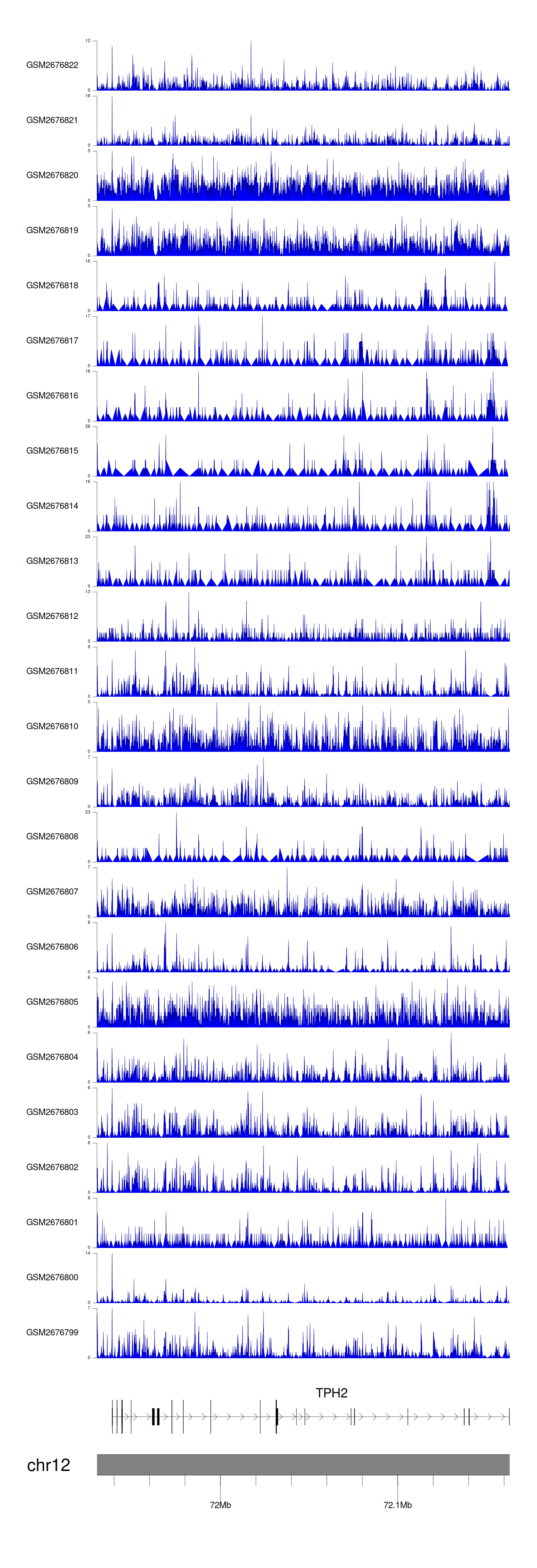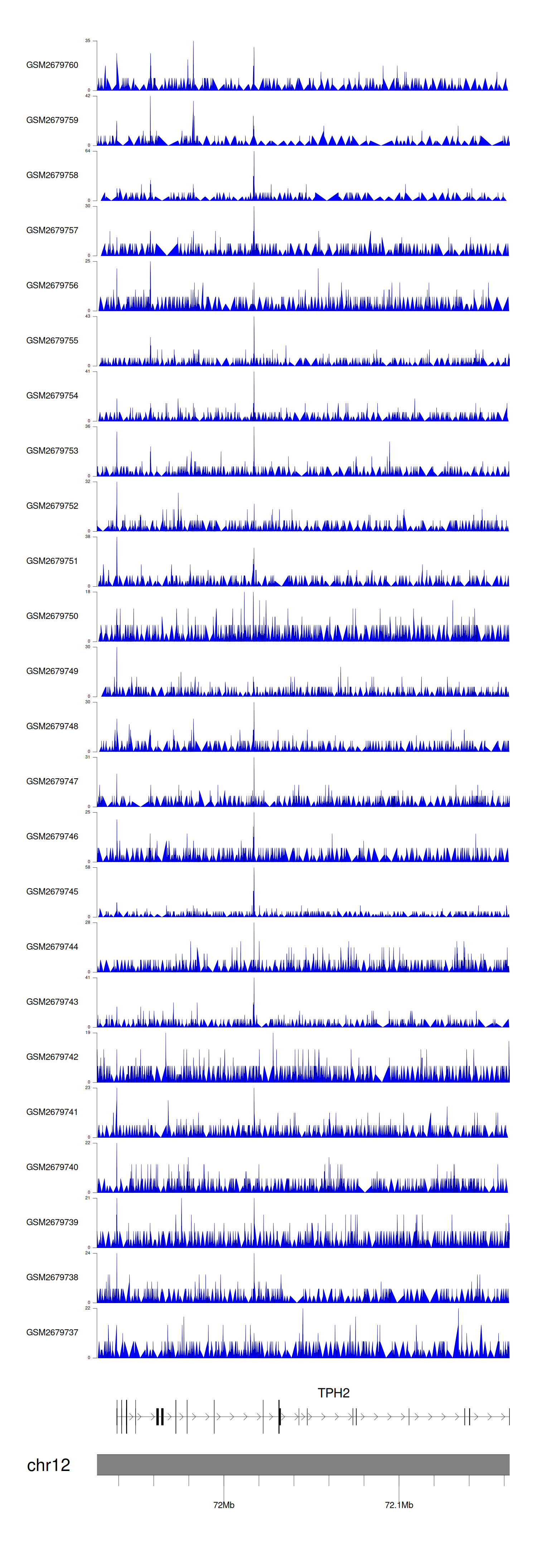 > Dataset: GSE100376 - TPH2 peak across samples