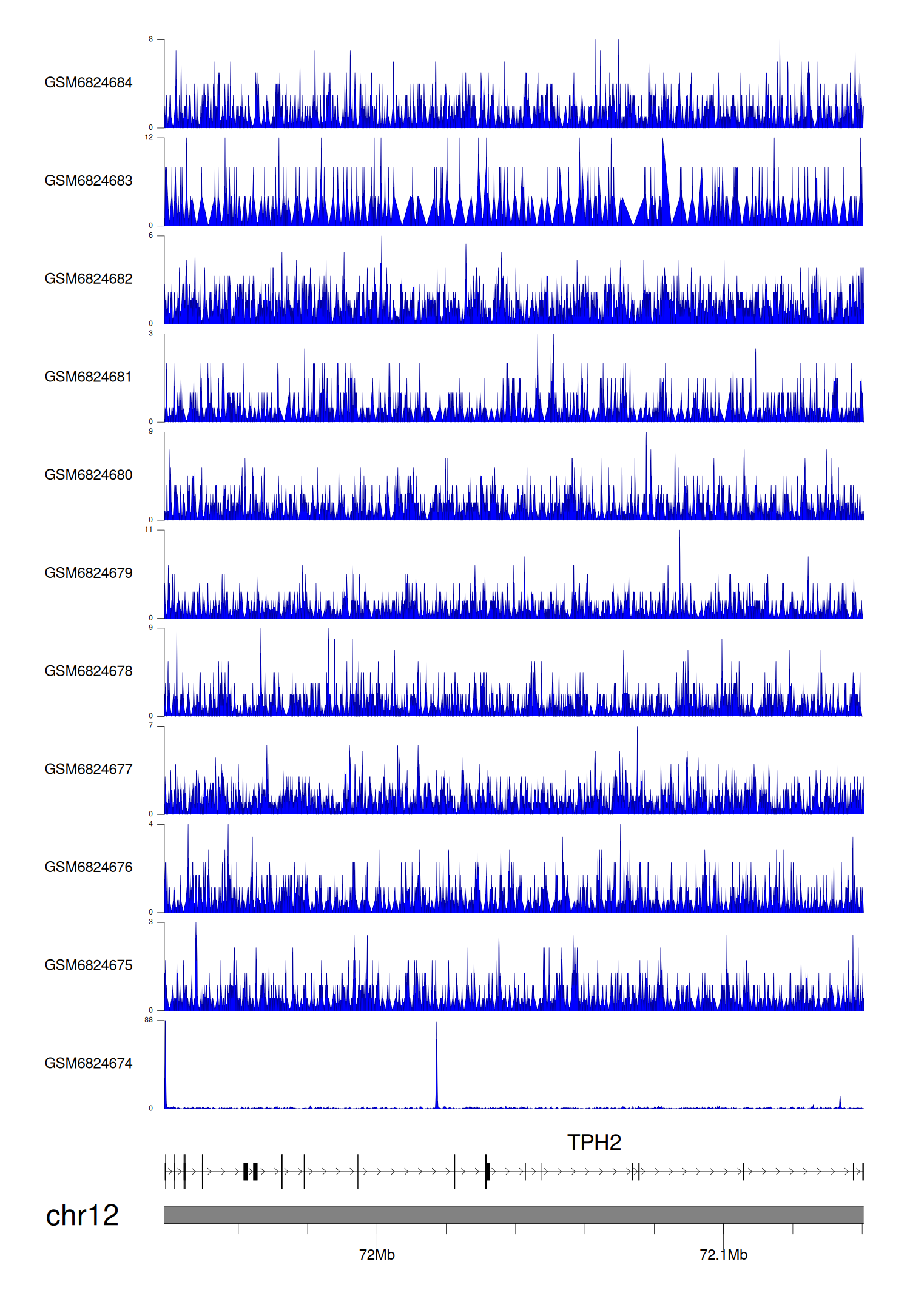 > Dataset: GSE144329 - TPH2 peak across samples