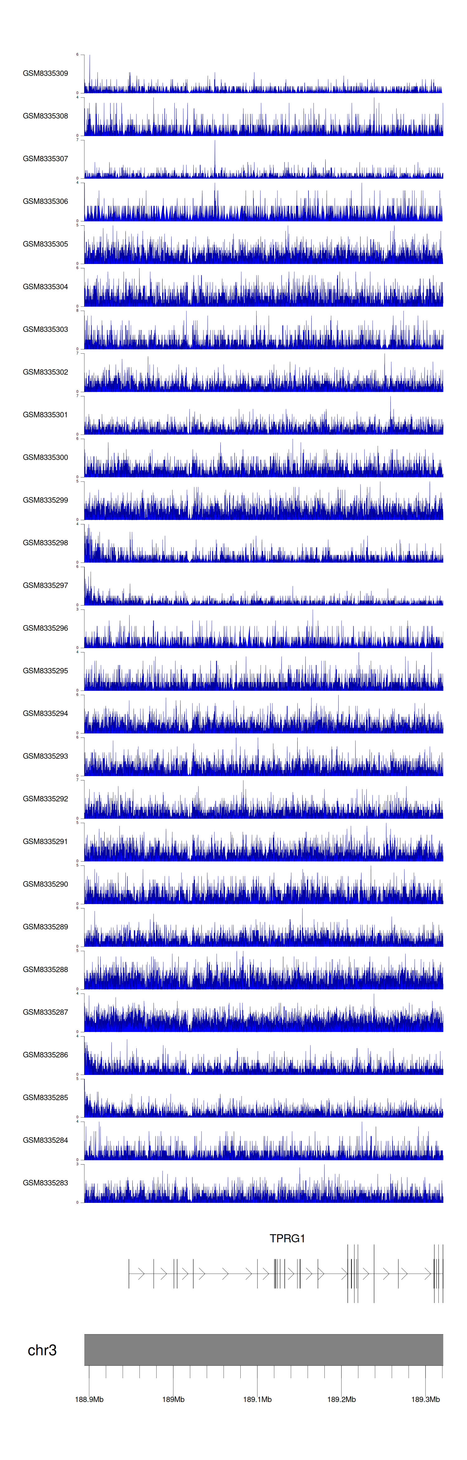 > Dataset: GSE131257 - TPRG1 peak across samples