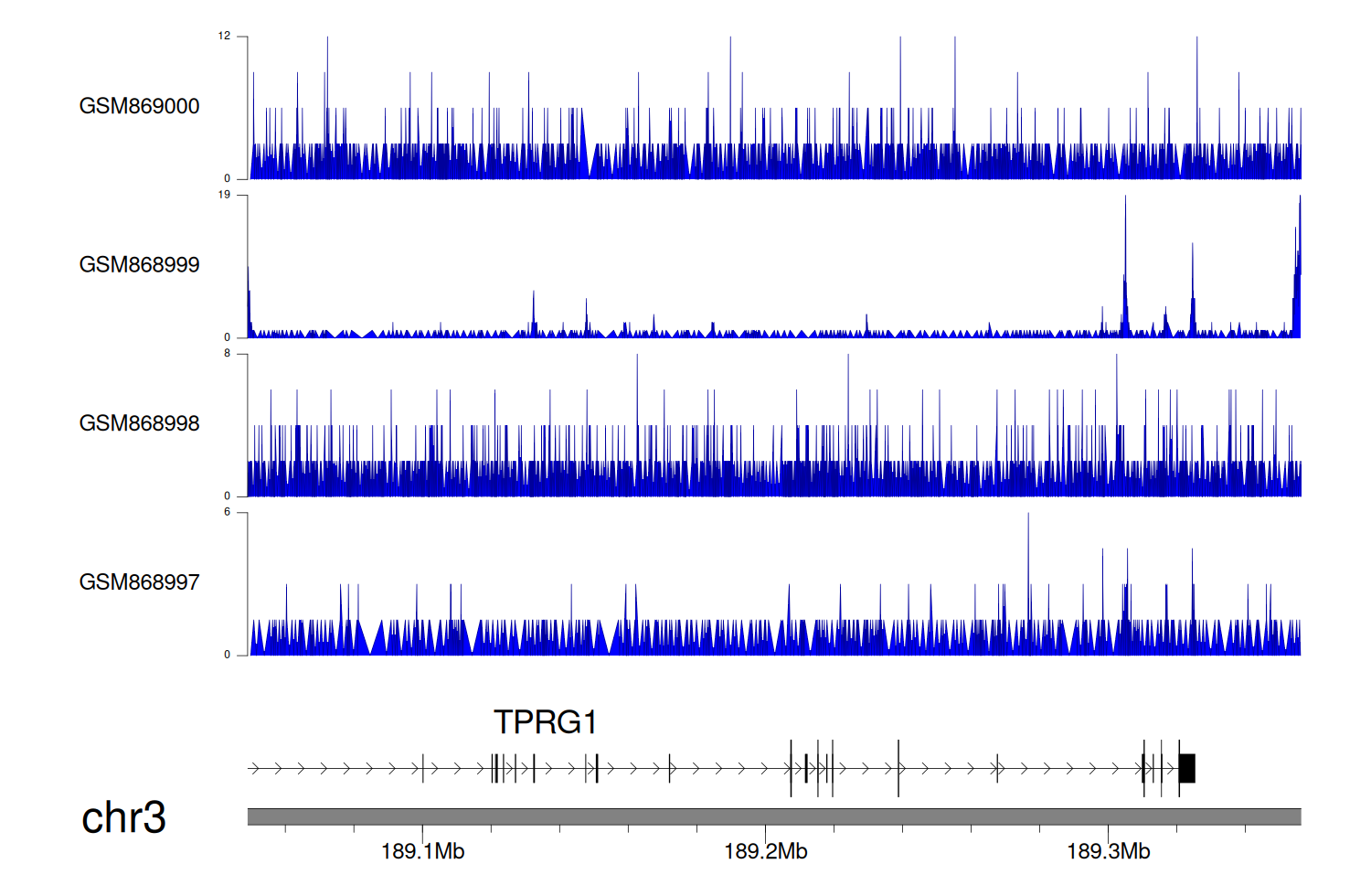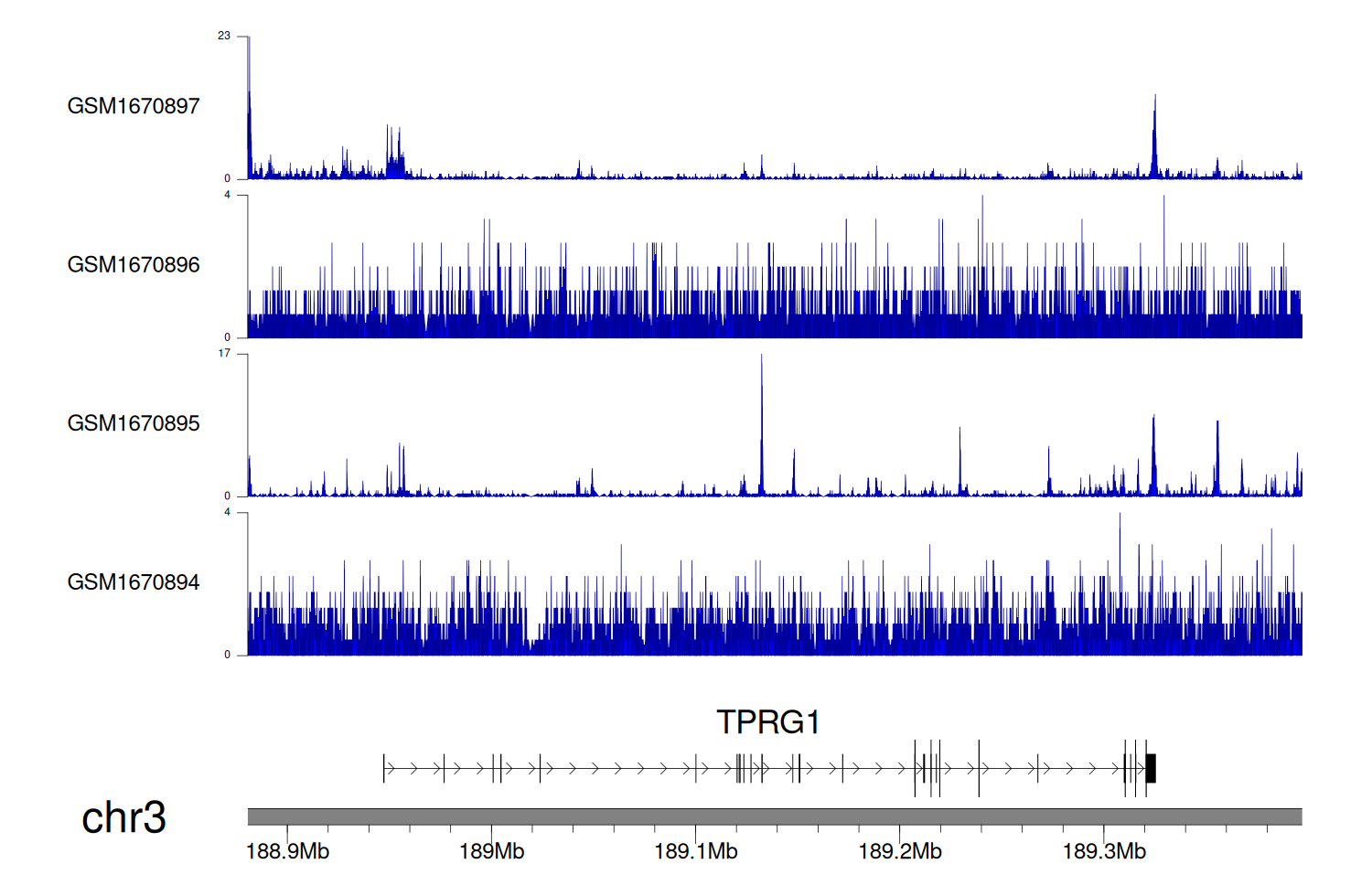 > Dataset: GSE68402 - TPRG1 peak across samples
