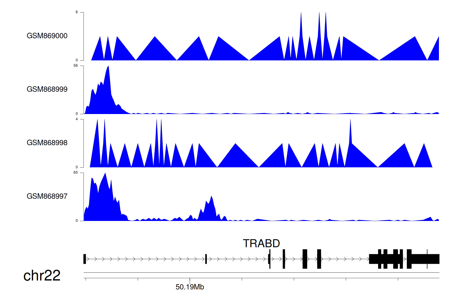 > Dataset: GSE35465 - TRABD peak across samples