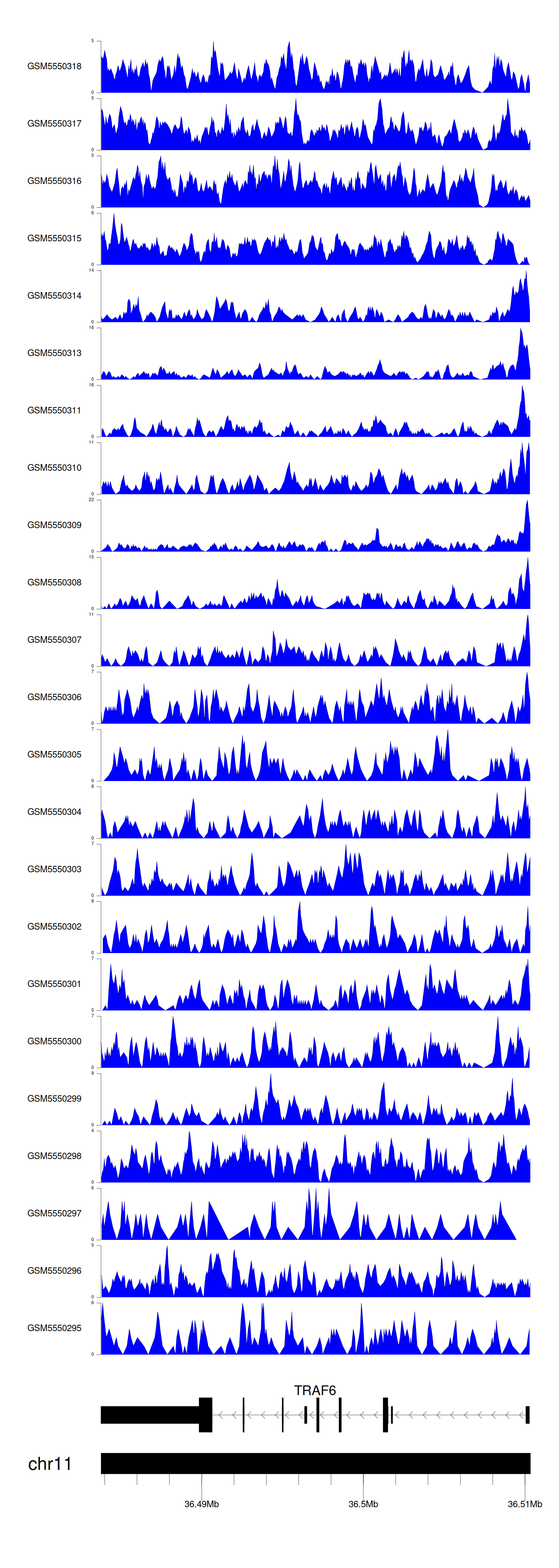 > Dataset: GSE183048 - TRAF6 peak across samples