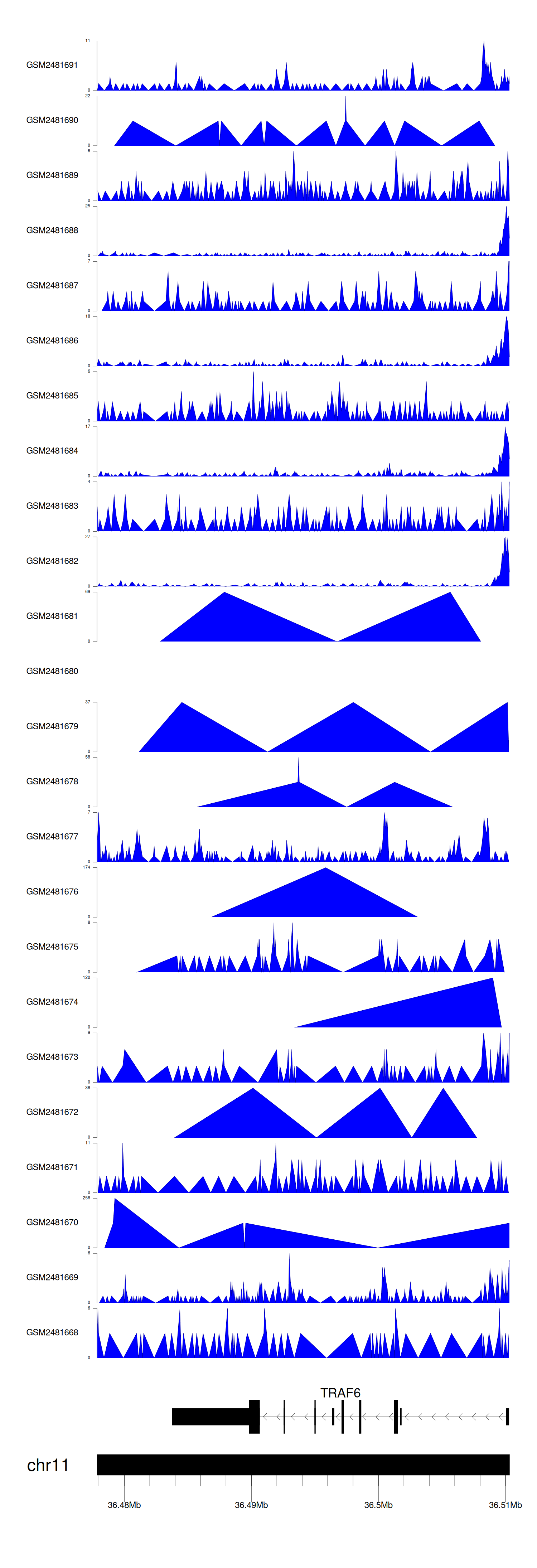 > Dataset: GSE94732 - TRAF6 peak across samples