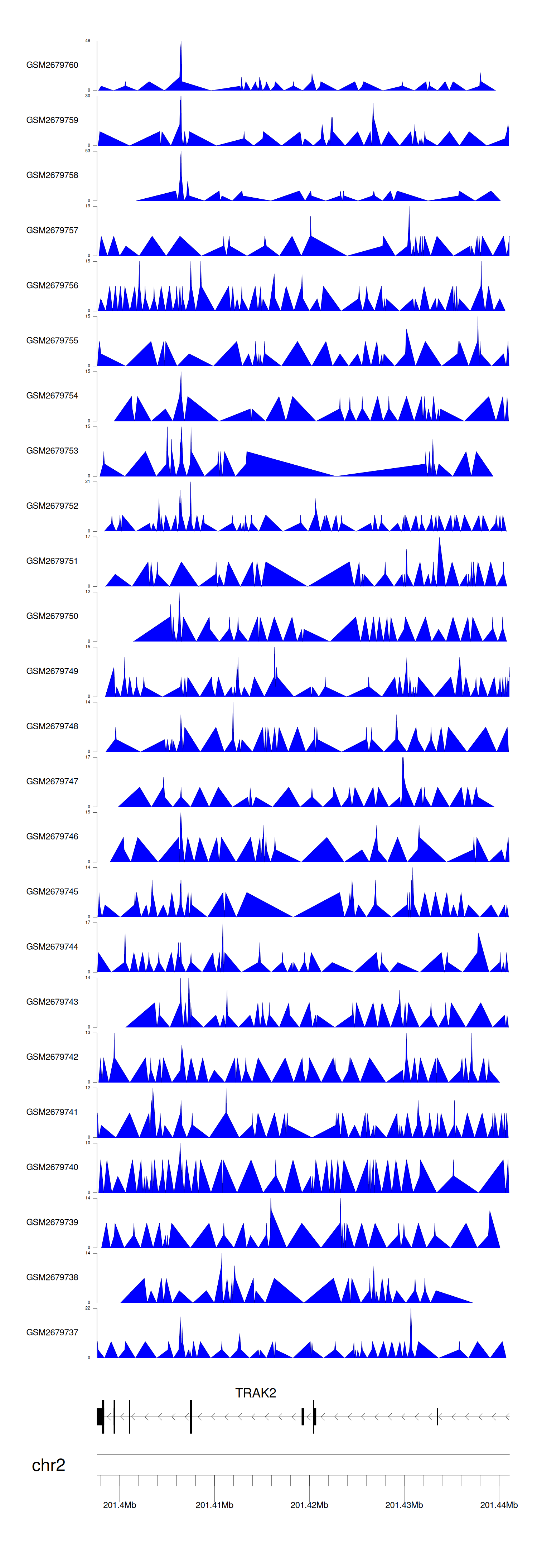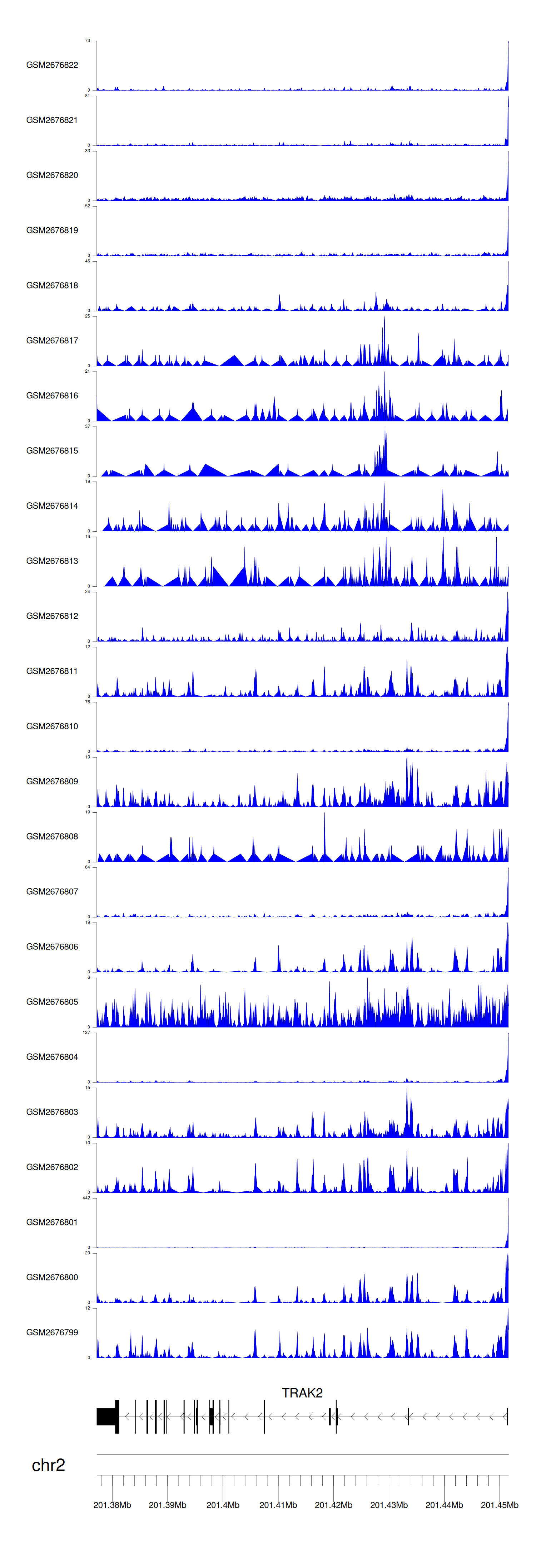 > Dataset: GSE100376 - TRAK2 peak across samples