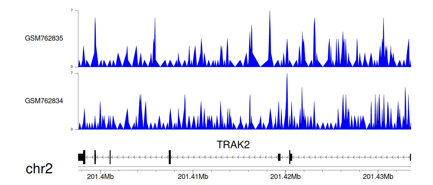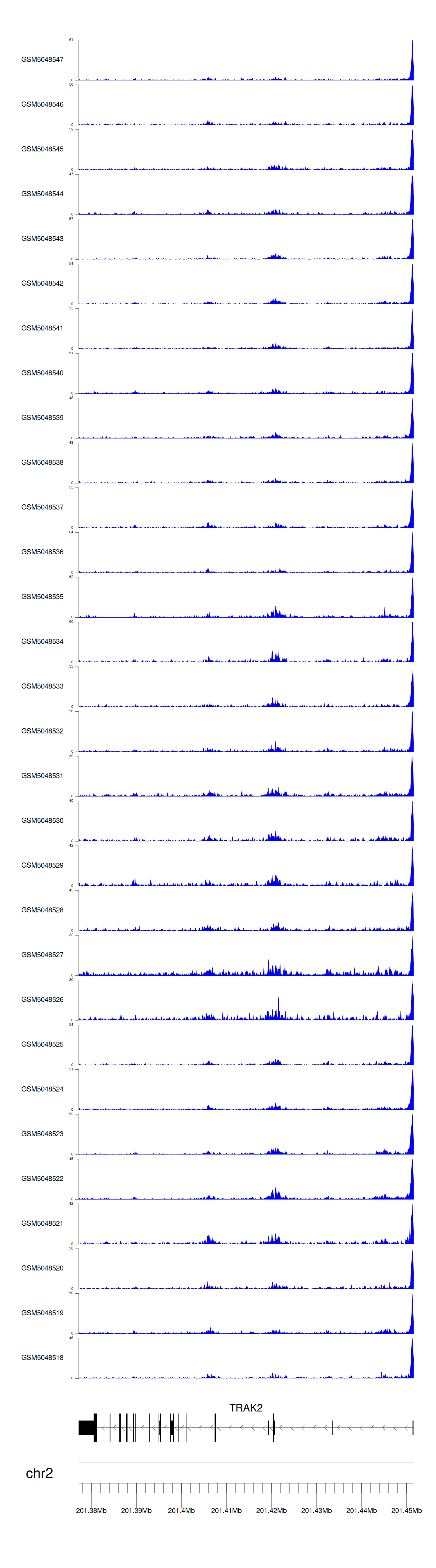 > Dataset: GSE30738 - TRAK2 peak across samples