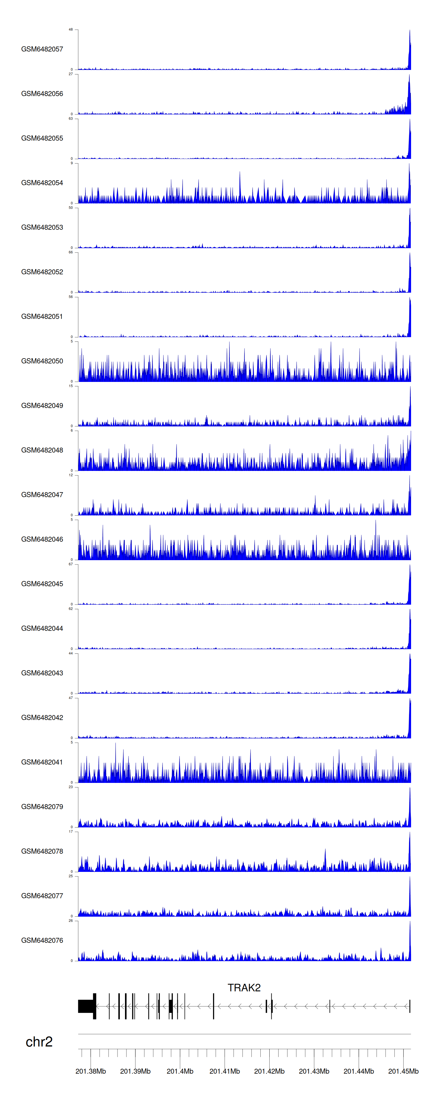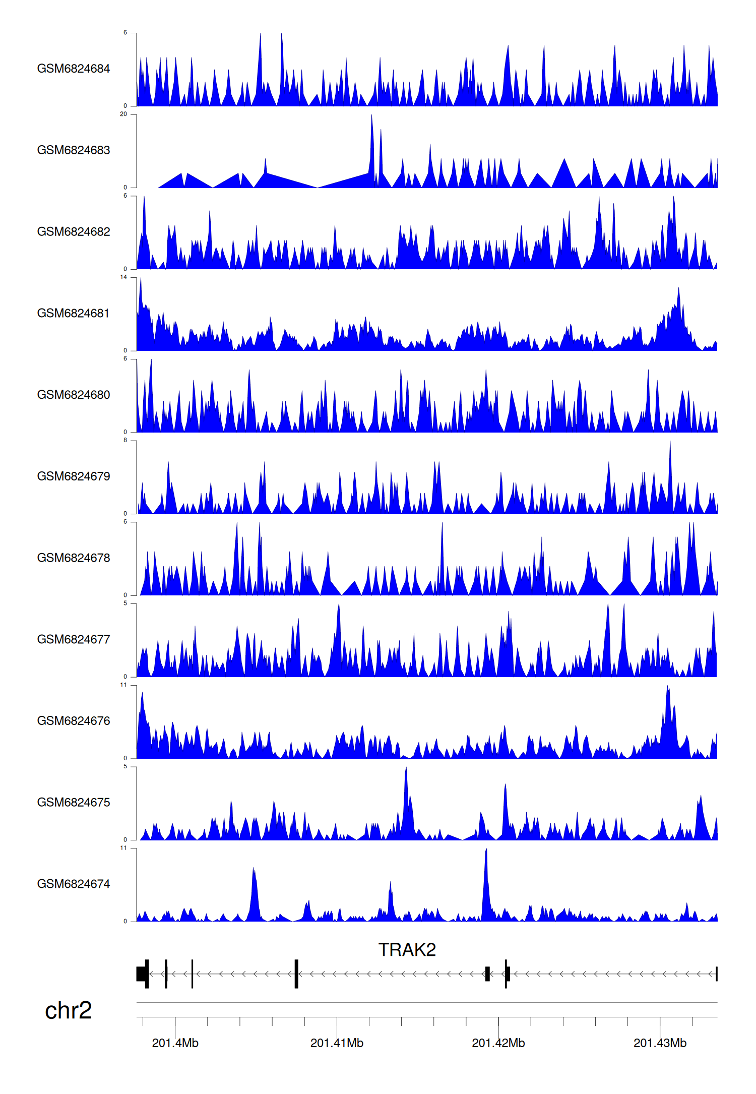 > Dataset: GSE165703 - TRAK2 peak across samples