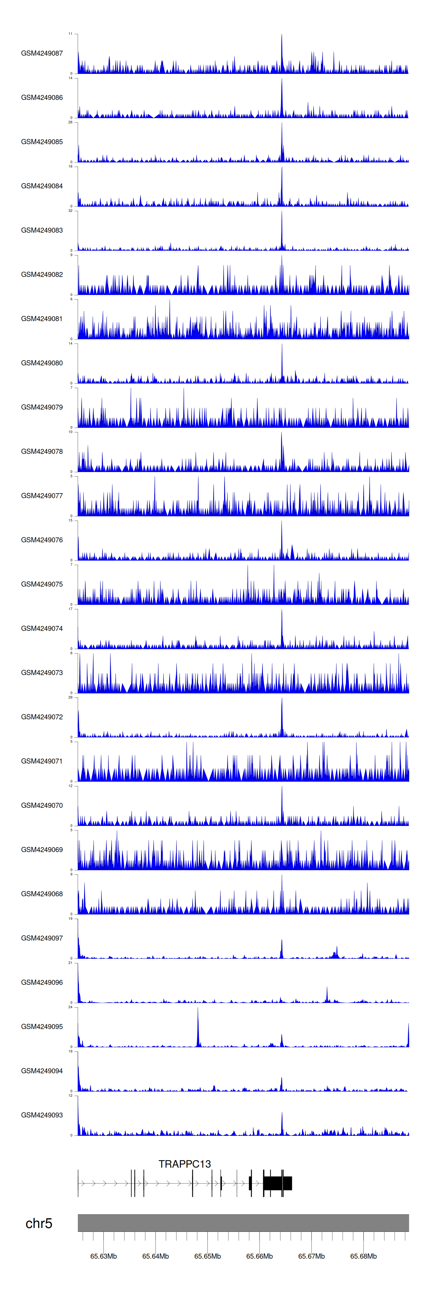 > Dataset: GSE143026 - TRAPPC13 peak across samples