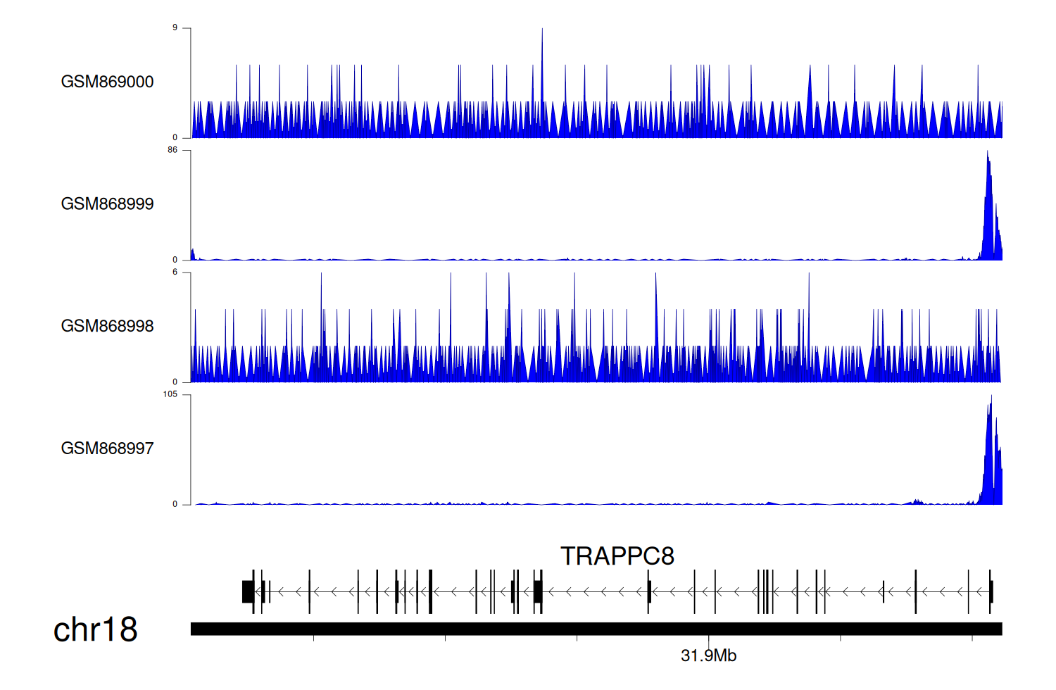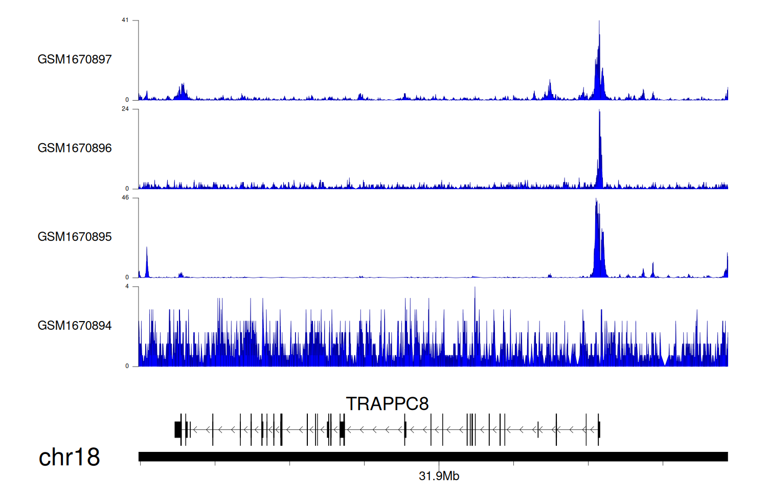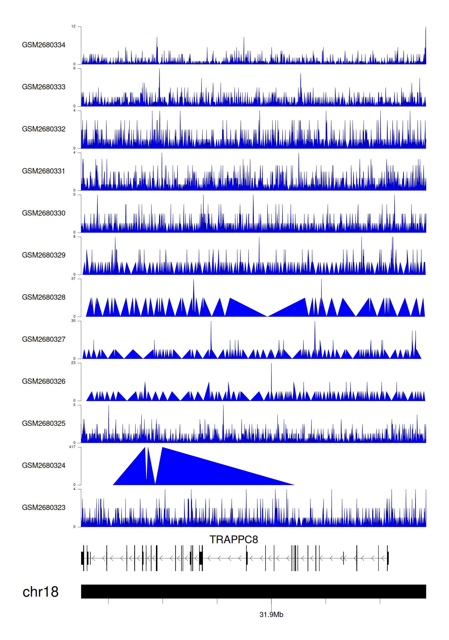 > Dataset: GSE68402 - TRAPPC8 peak across samples