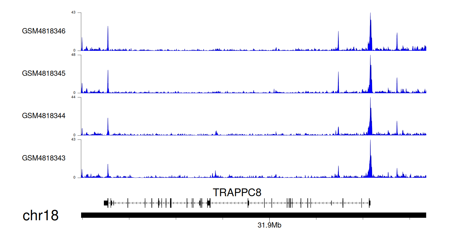 > Dataset: GSE131257 - TRAPPC8 peak across samples