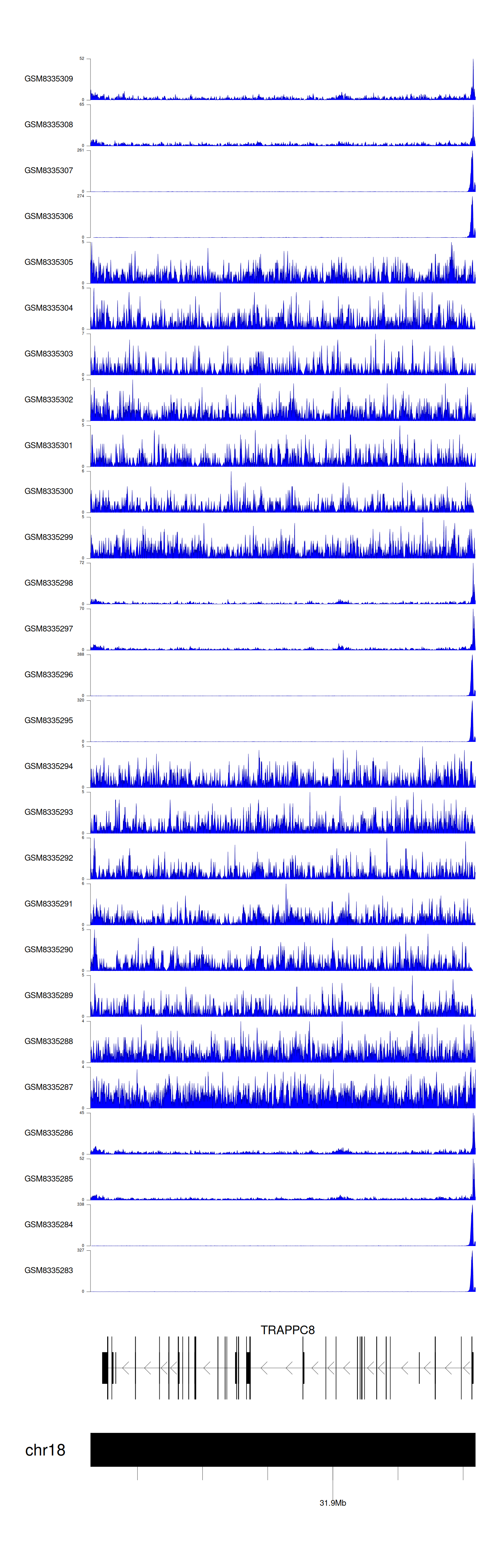 > Dataset: GSE270130 - TRAPPC8 peak across samples