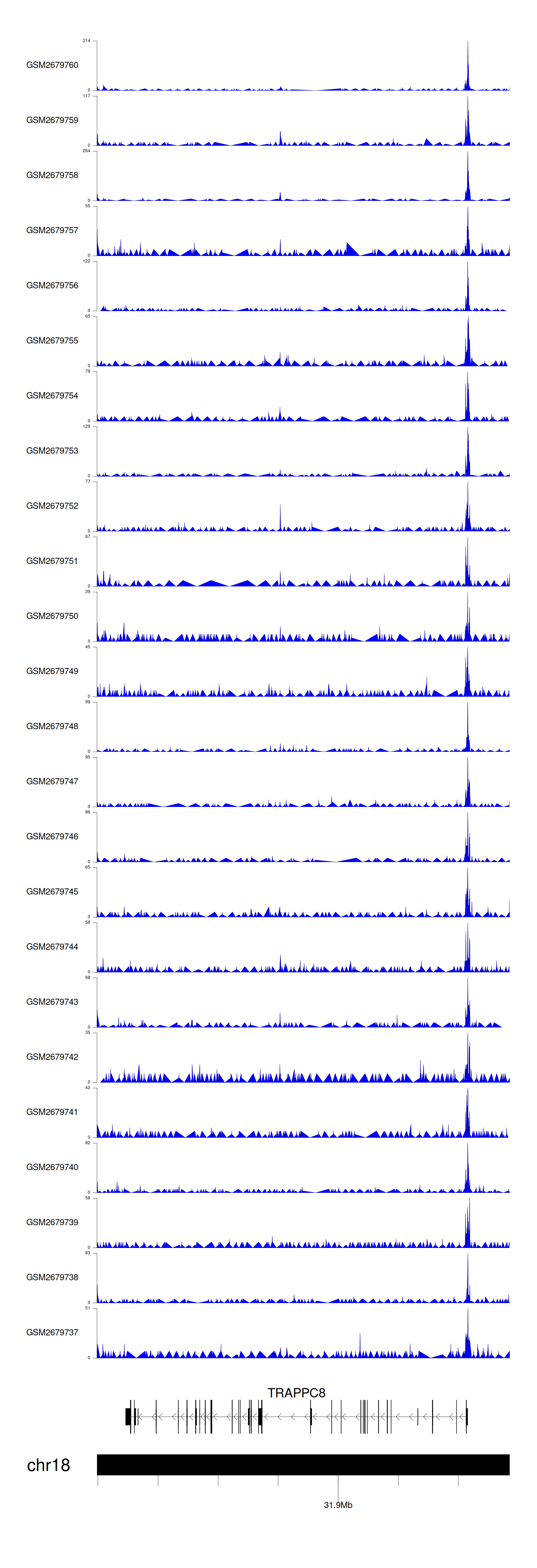 > Dataset: GSE30738 - TRAPPC8 peak across samples