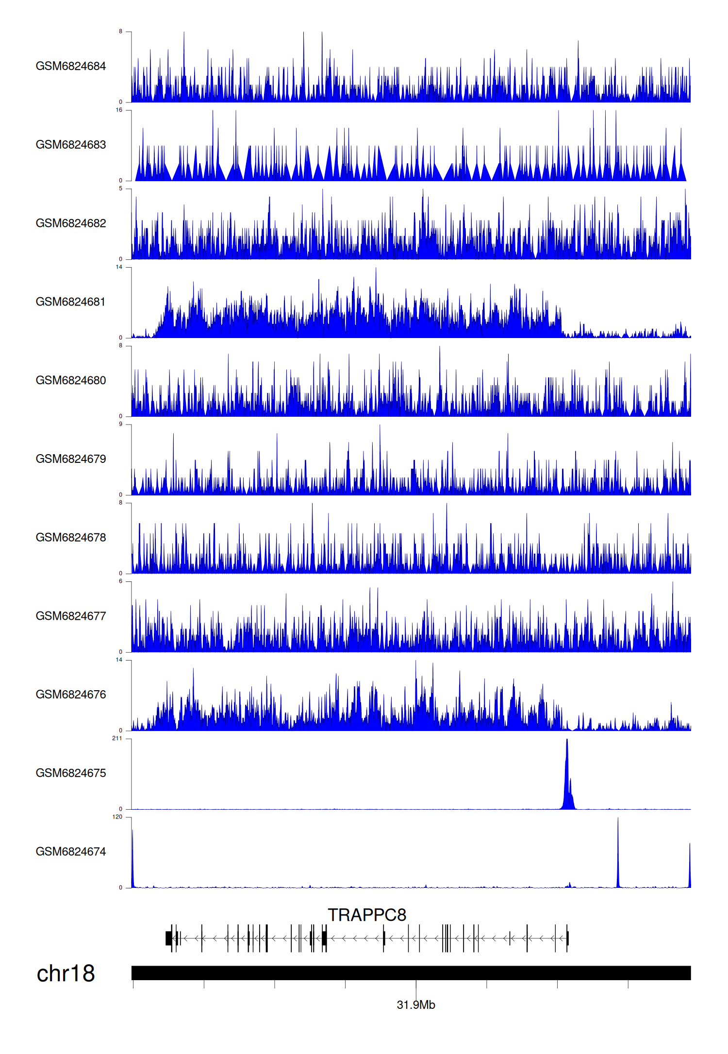 > Dataset: GSE165703 - TRAPPC8 peak across samples