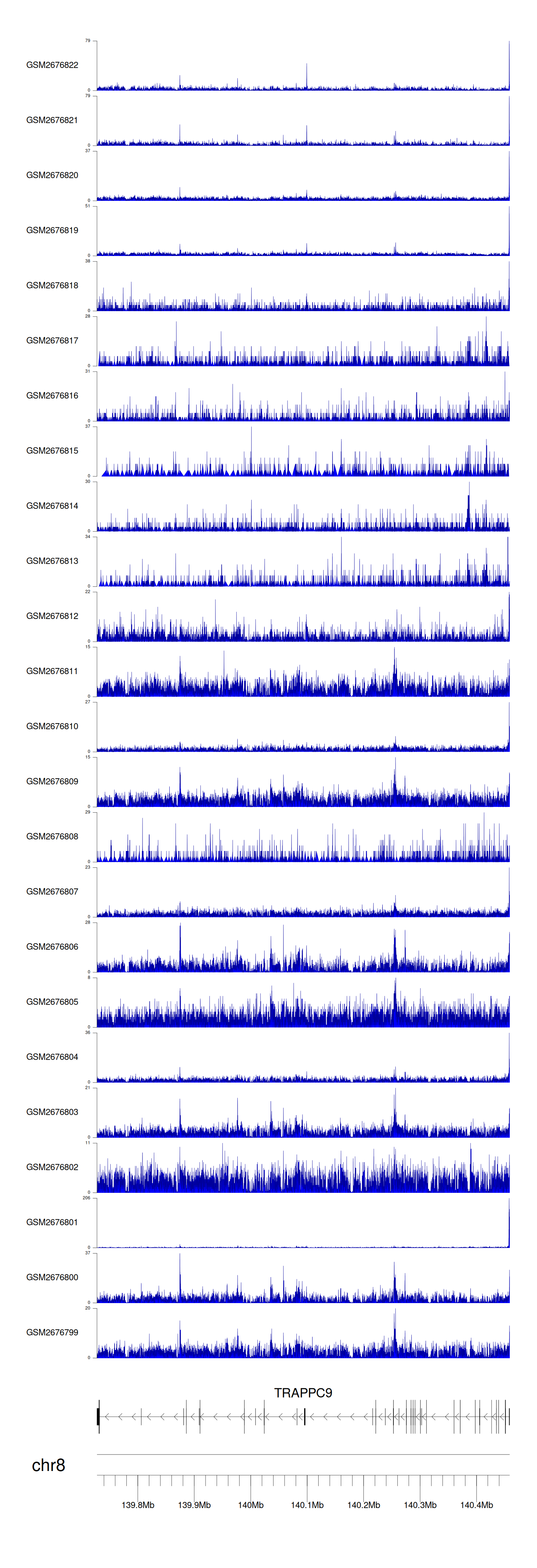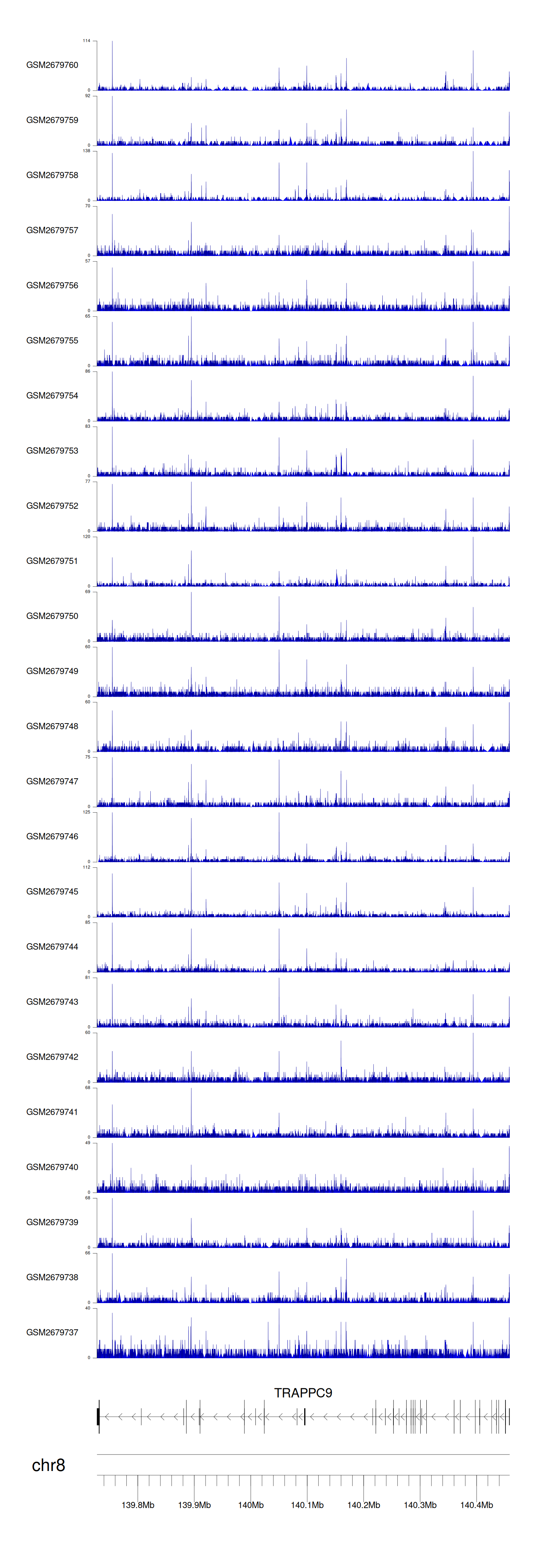 > Dataset: GSE100376 - TRAPPC9 peak across samples