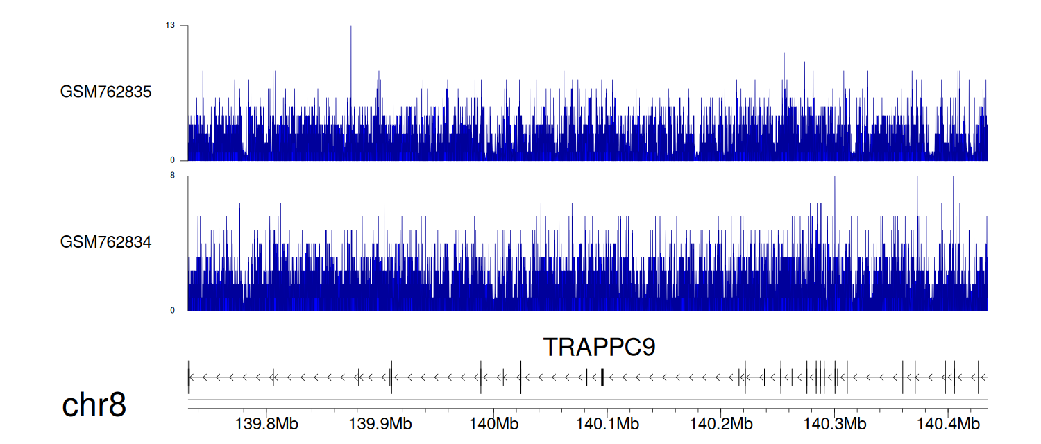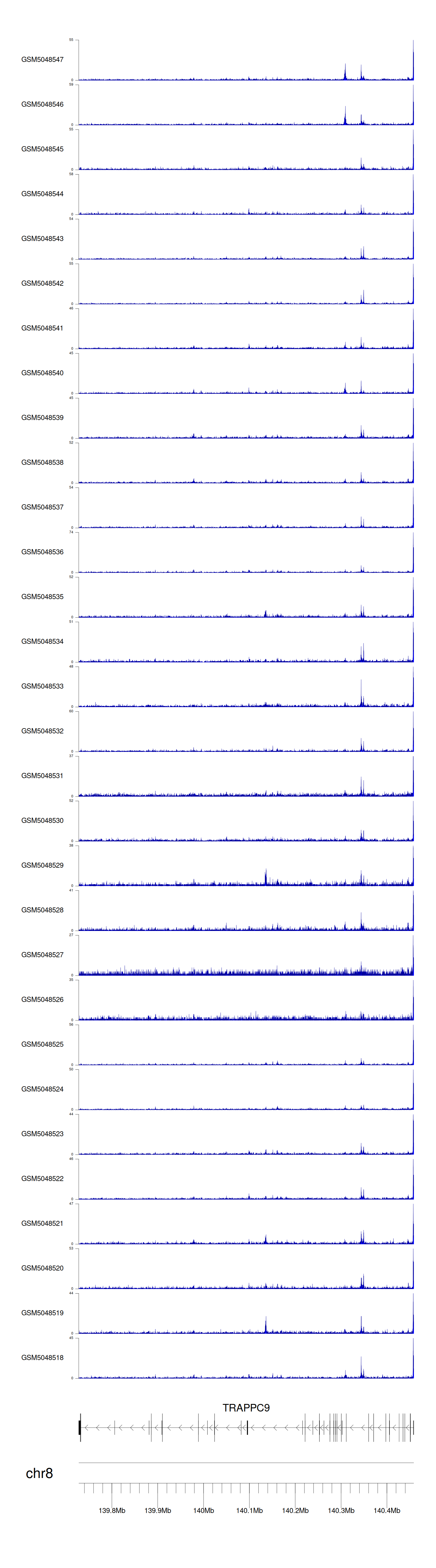 > Dataset: GSE30738 - TRAPPC9 peak across samples