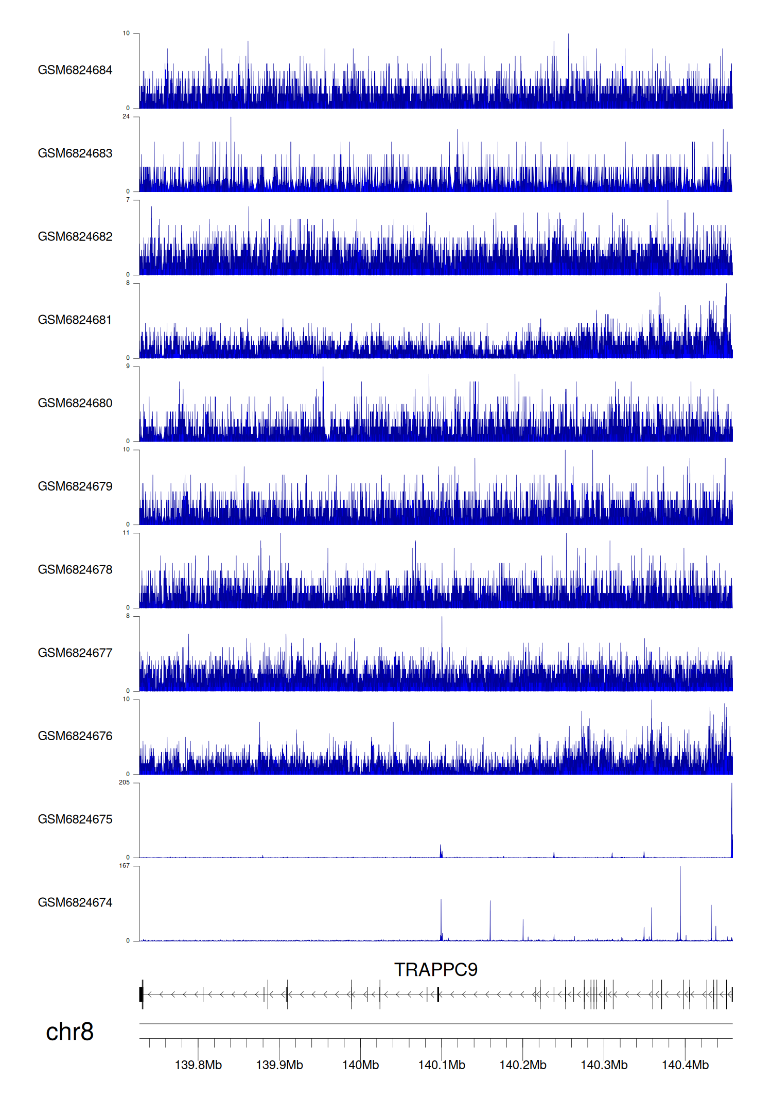> Dataset: GSE144329 - TRAPPC9 peak across samples