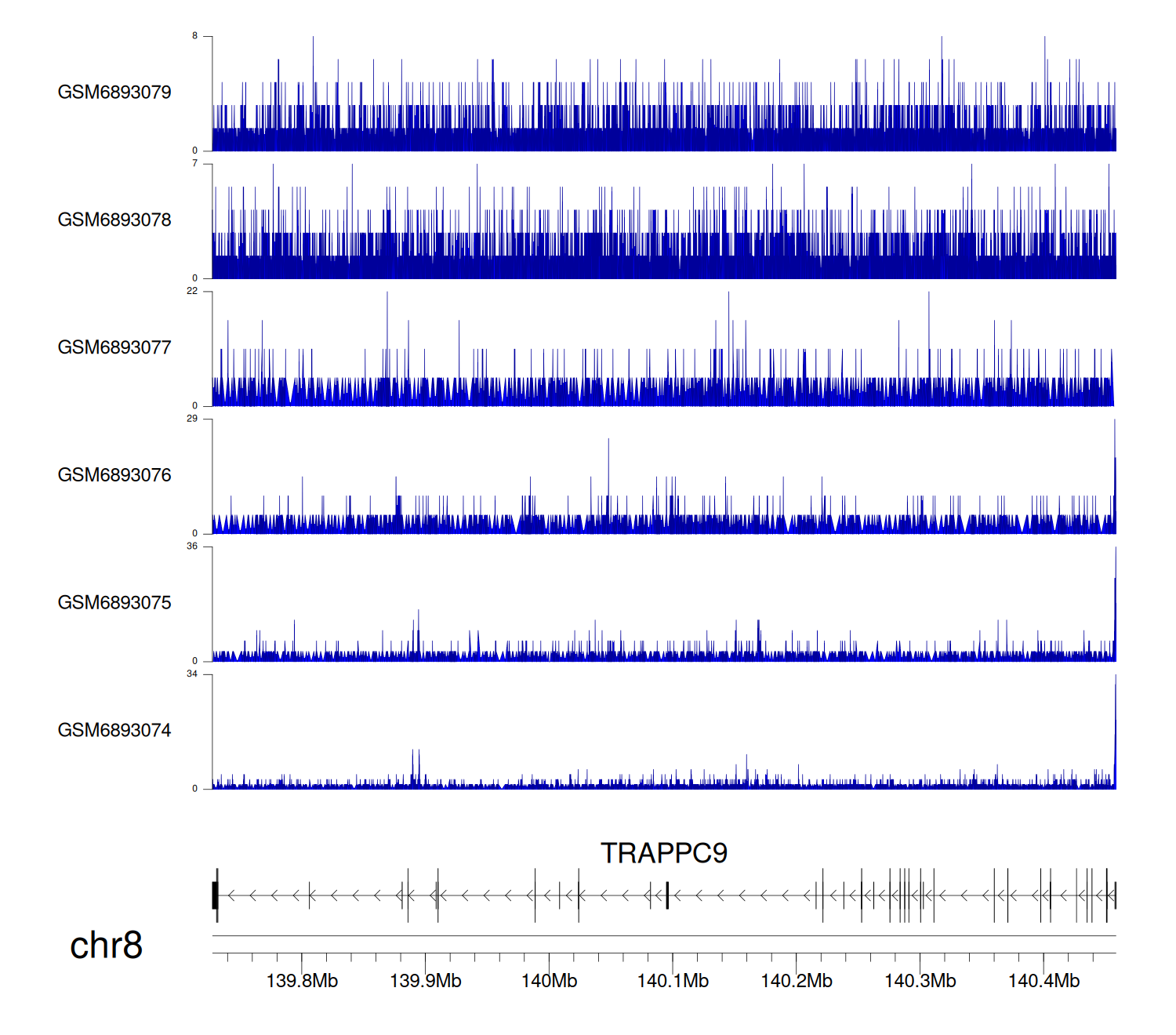> Dataset: GSE211651 - TRAPPC9 peak across samples
