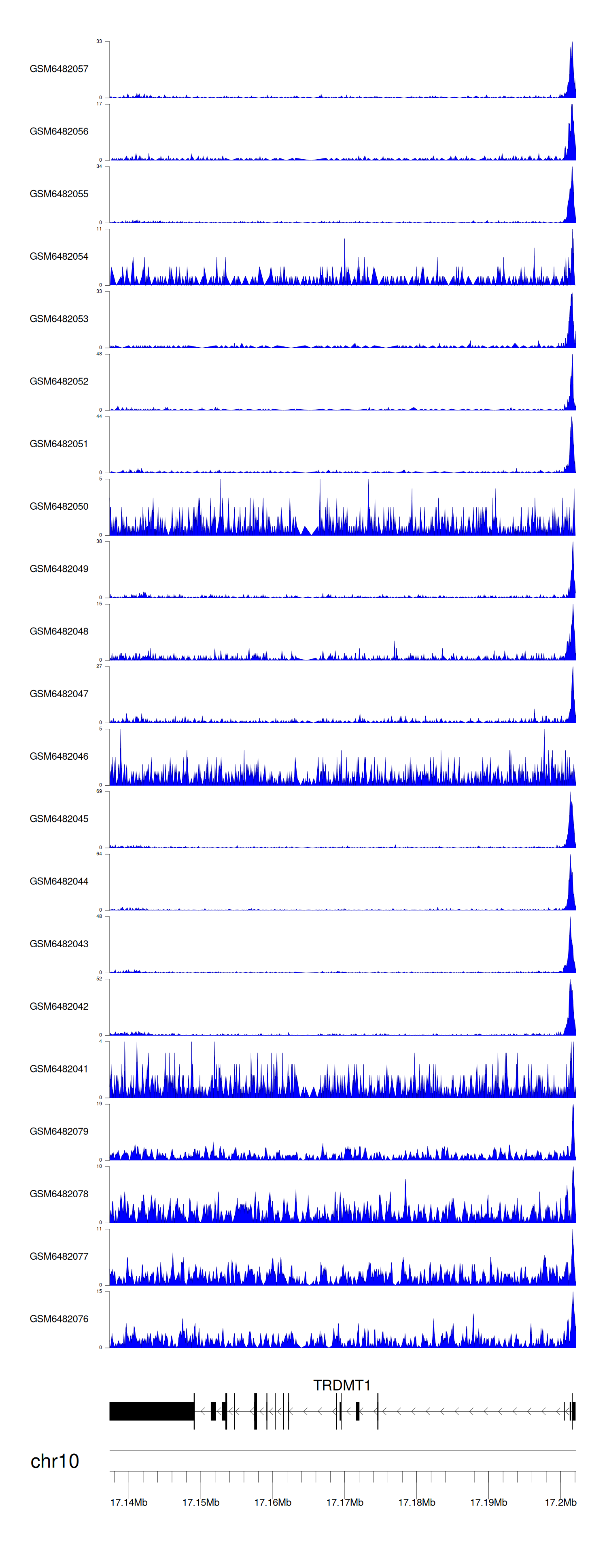 > Dataset: GSE165703 - TRDMT1 peak across samples
