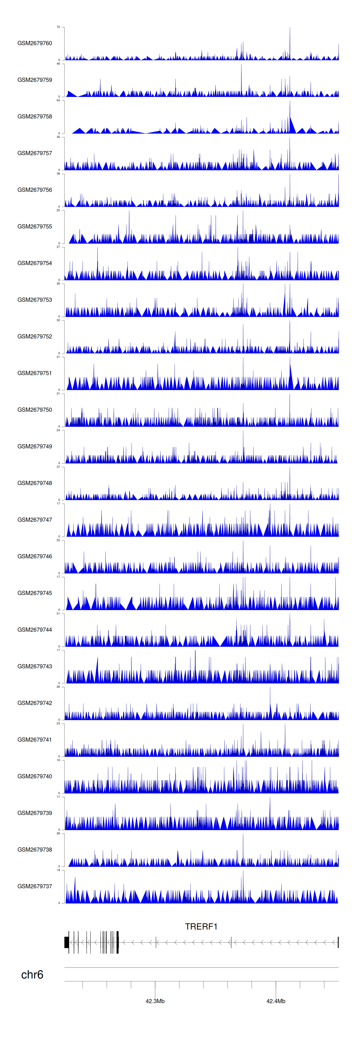 > Dataset: GSE100376 - TRERF1 peak across samples