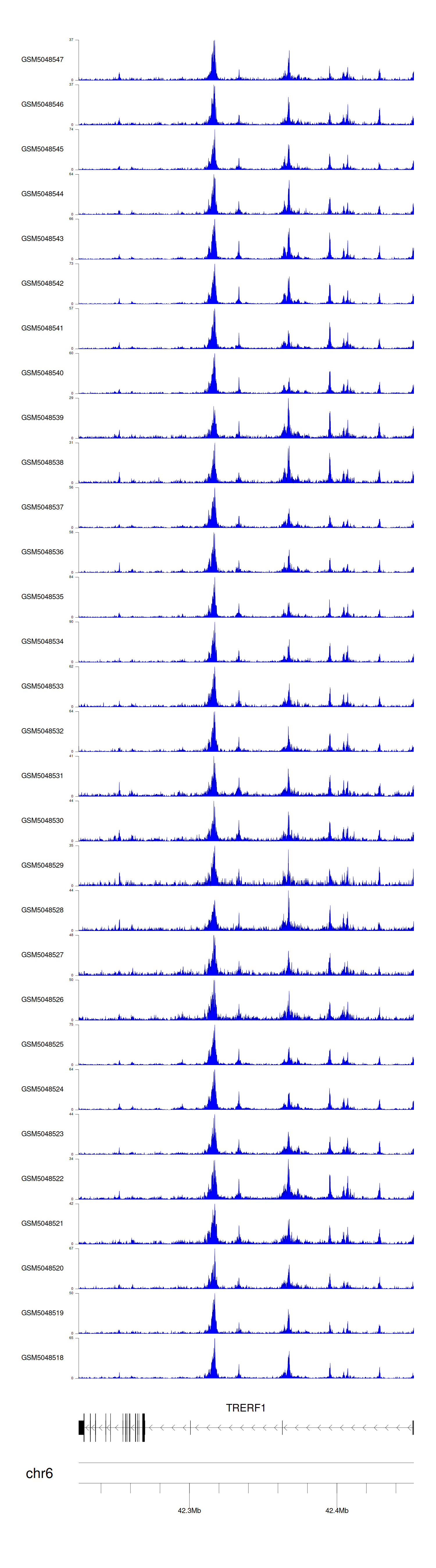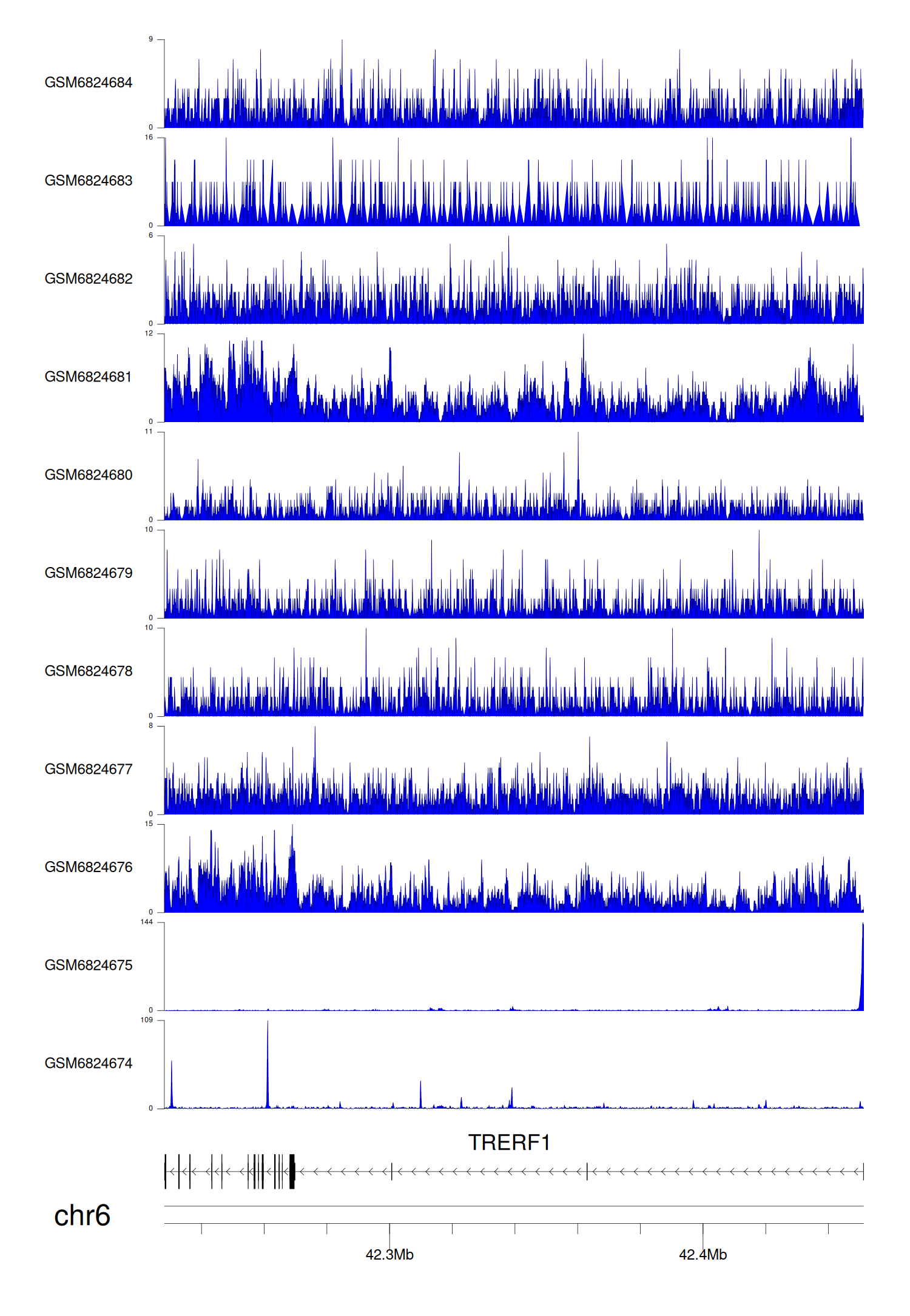 > Dataset: GSE144329 - TRERF1 peak across samples