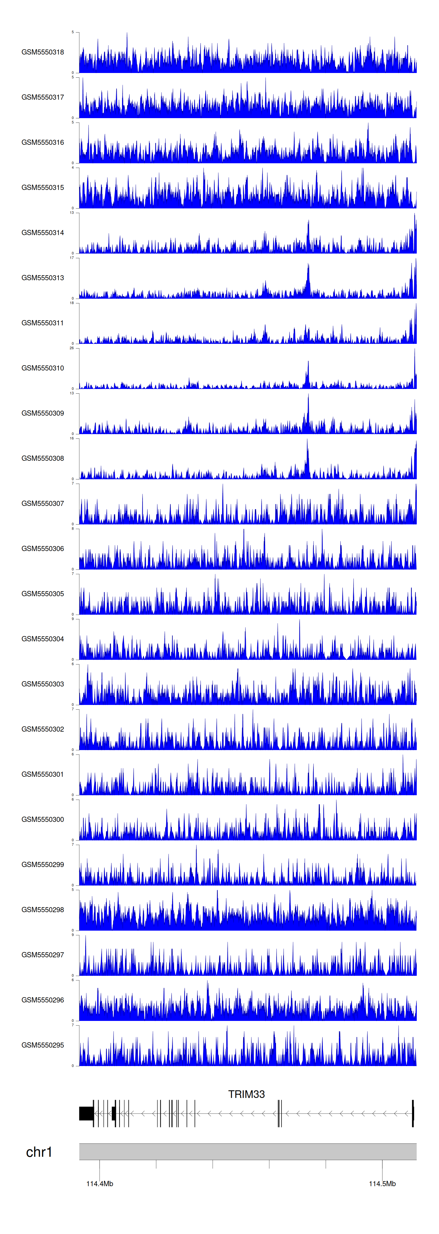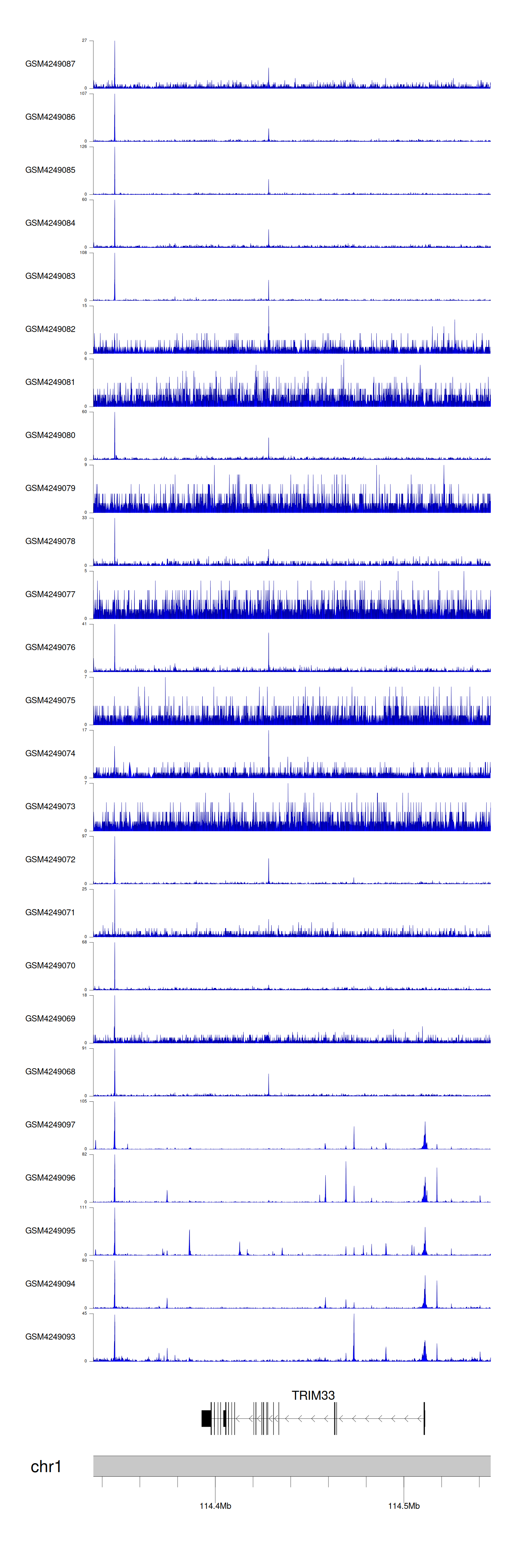 > Dataset: GSE143026 - TRIM33 peak across samples