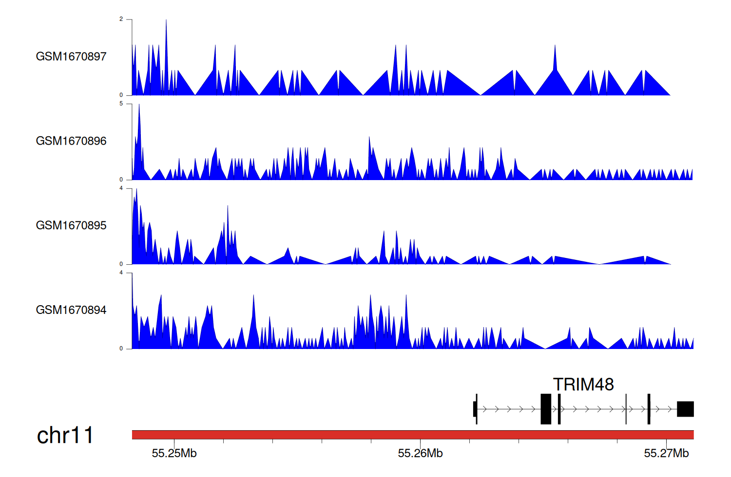 > Dataset: GSE68402 - TRIM48 peak across samples