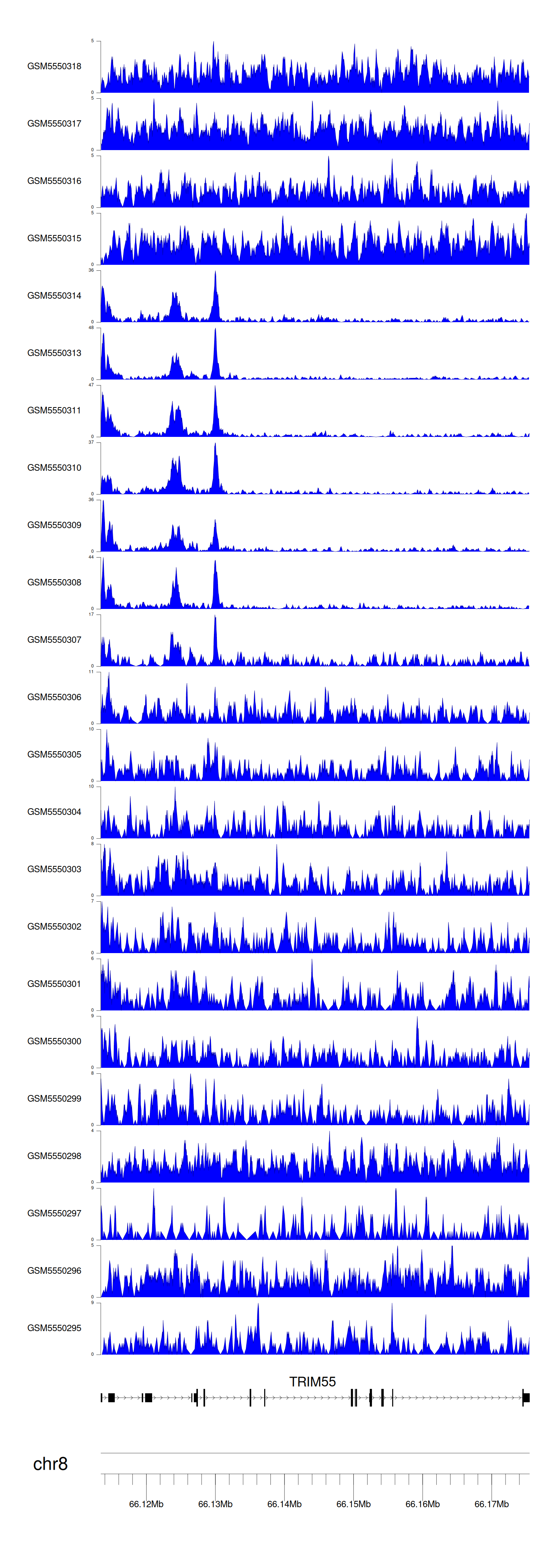 > Dataset: GSE143026 - TRIM55 peak across samples