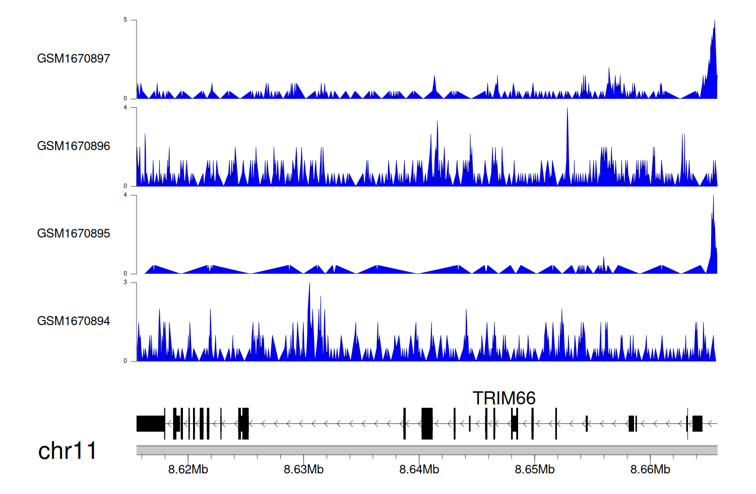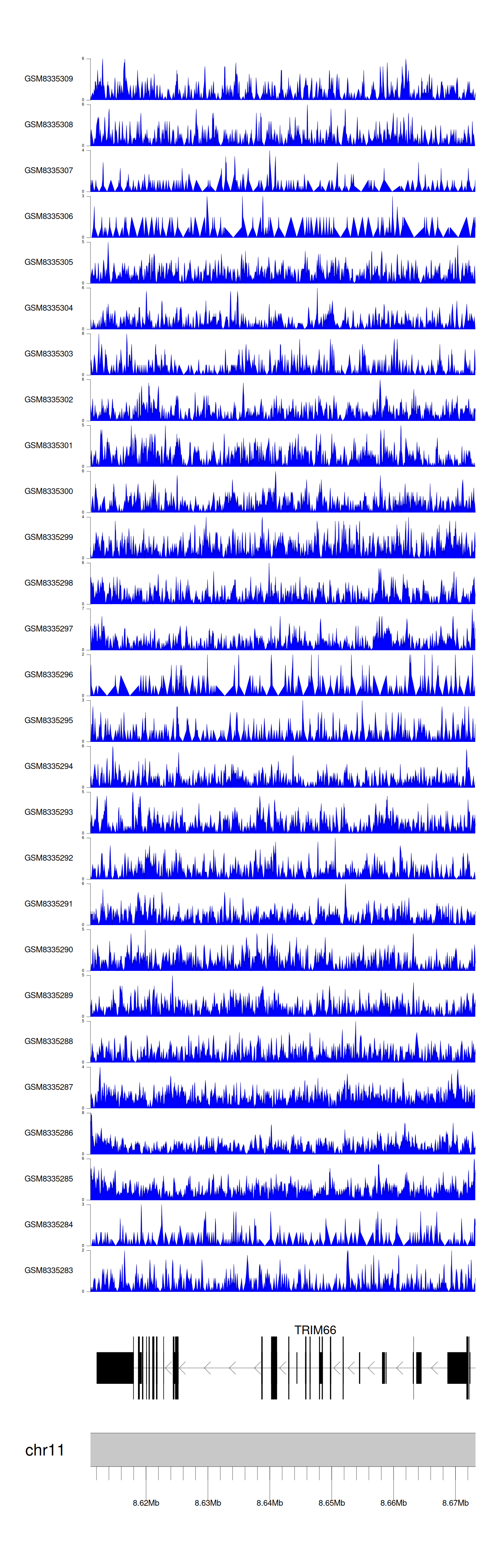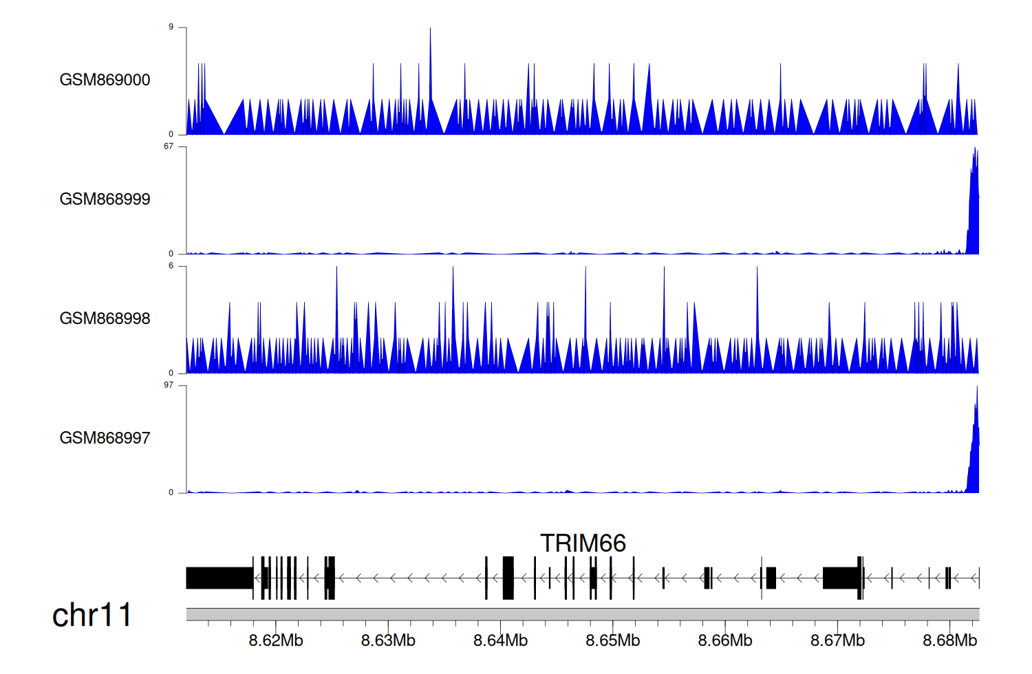 > Dataset: GSE68402 - TRIM66 peak across samples