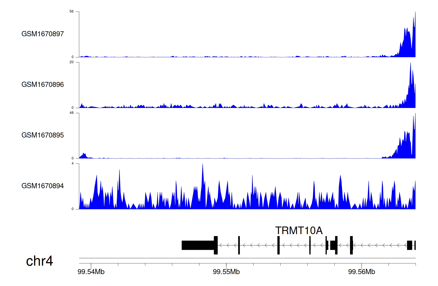 > Dataset: GSE68402 - TRMT10A peak across samples