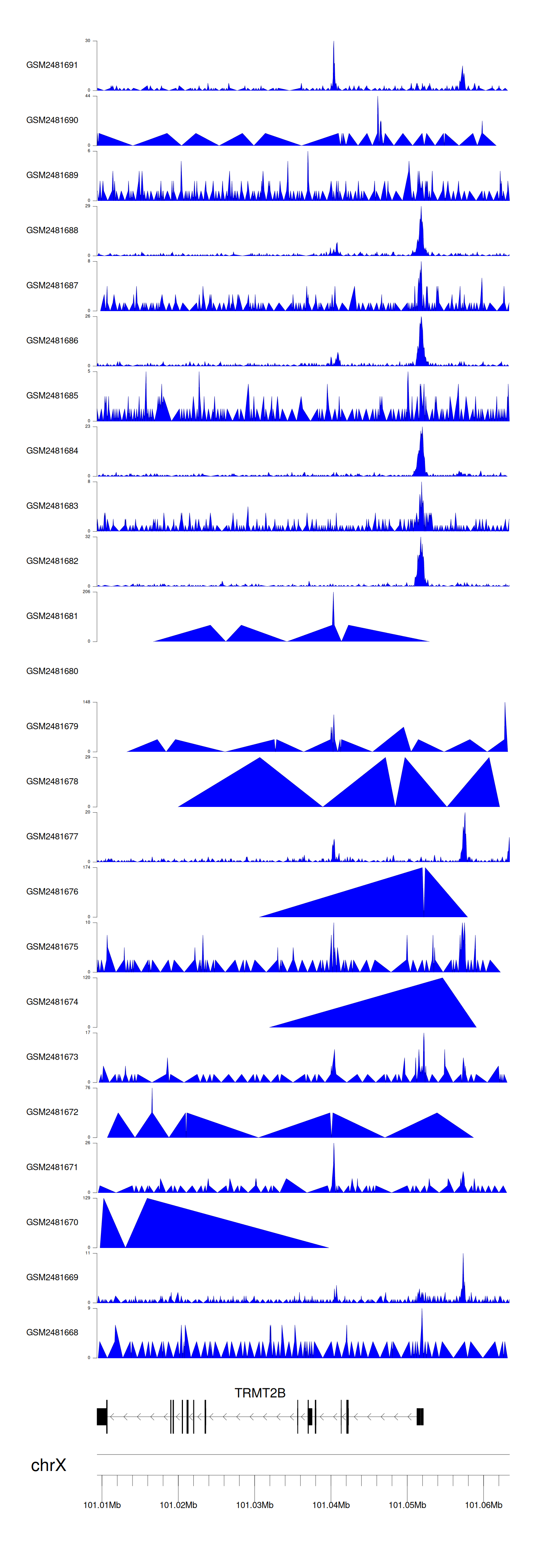 > Dataset: GSE94732 - TRMT2B peak across samples
