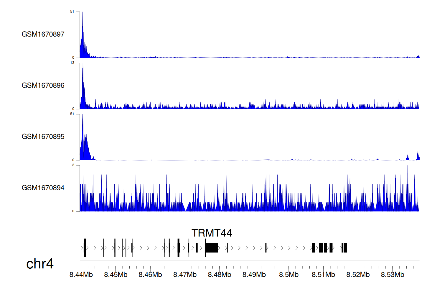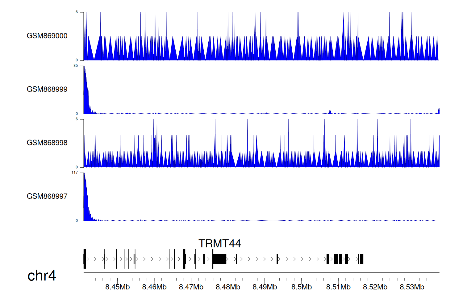 > Dataset: GSE68402 - TRMT44 peak across samples