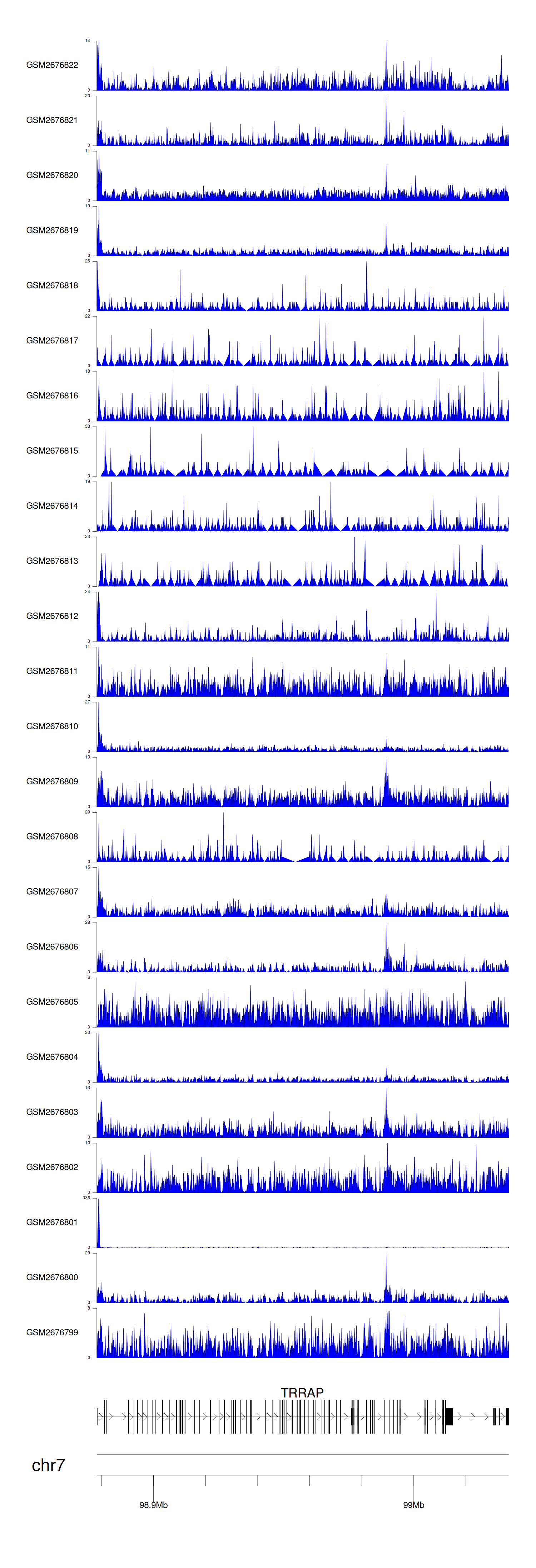 Summary This gene encodes a large multidomain protein of the phosphoinositide 3-kinase-related kinases (PIKK) family. The encoded protein is a common component of many histone acetyltransferase (HAT) complexes and plays a role in transcription and DNA repair by recruiting HAT complexes to chromatin. Deregulation of this gene may play a role in several types of cancer including glioblastoma multiforme. Alternatively spliced transcript variants encoding multiple isoforms have been observed for this gene. [provided by RefSeq, Sep 2011]