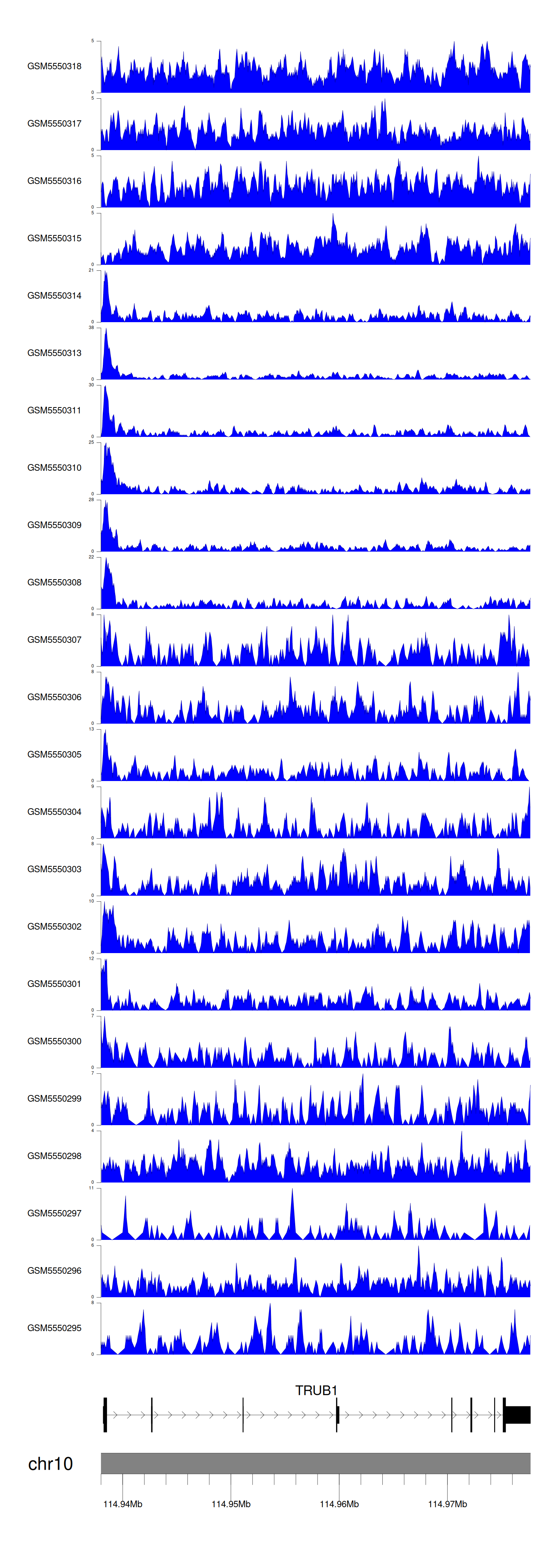 > Dataset: GSE143026 - TRUB1 peak across samples