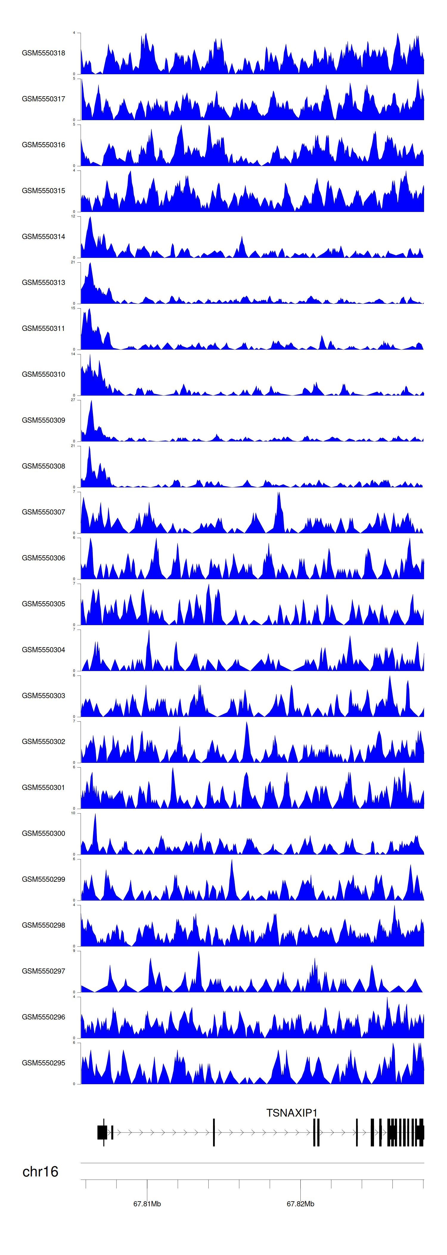 > Dataset: GSE143026 - TSNAXIP1 peak across samples